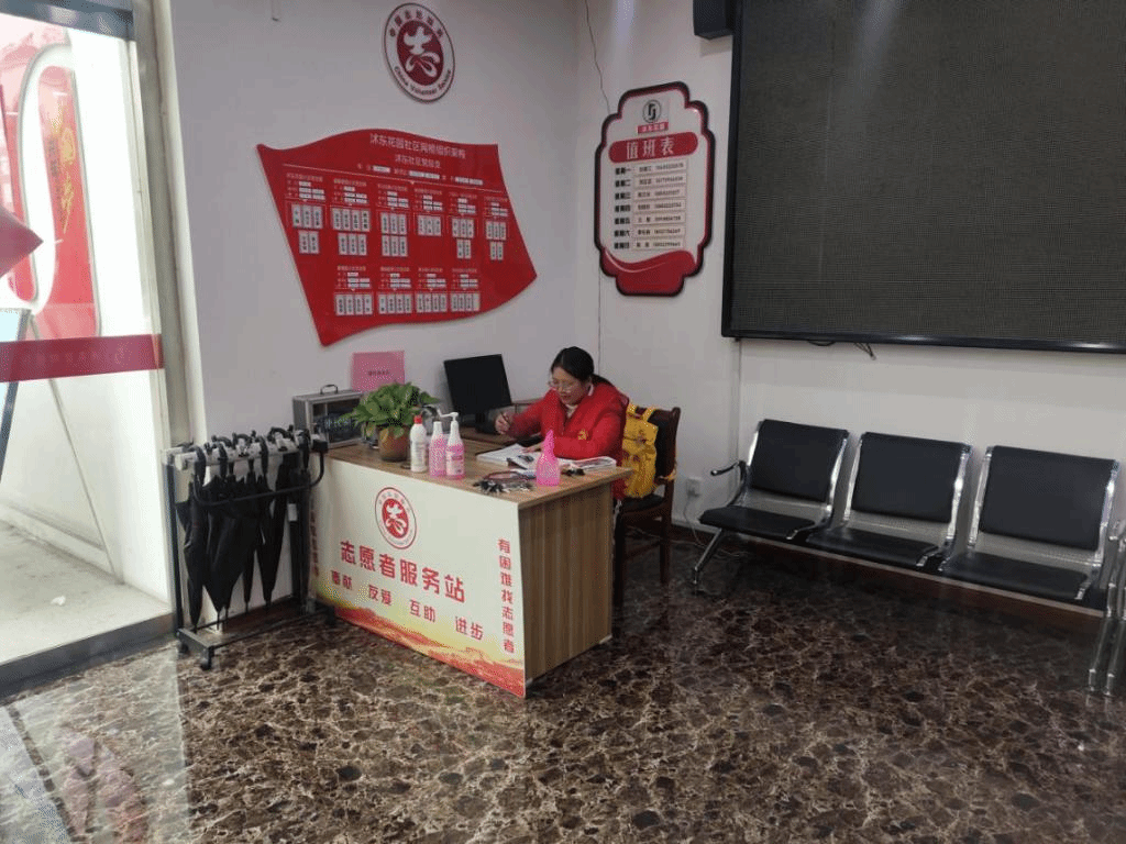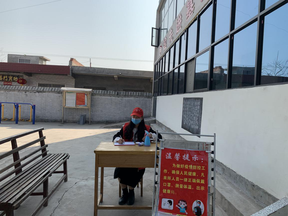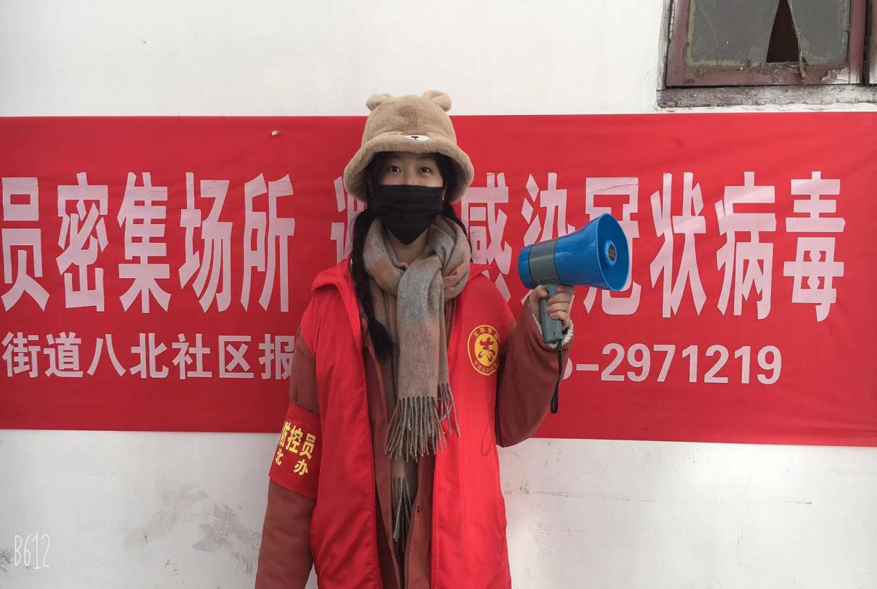 (19级学生左静雯做居民进出社区登记工作)