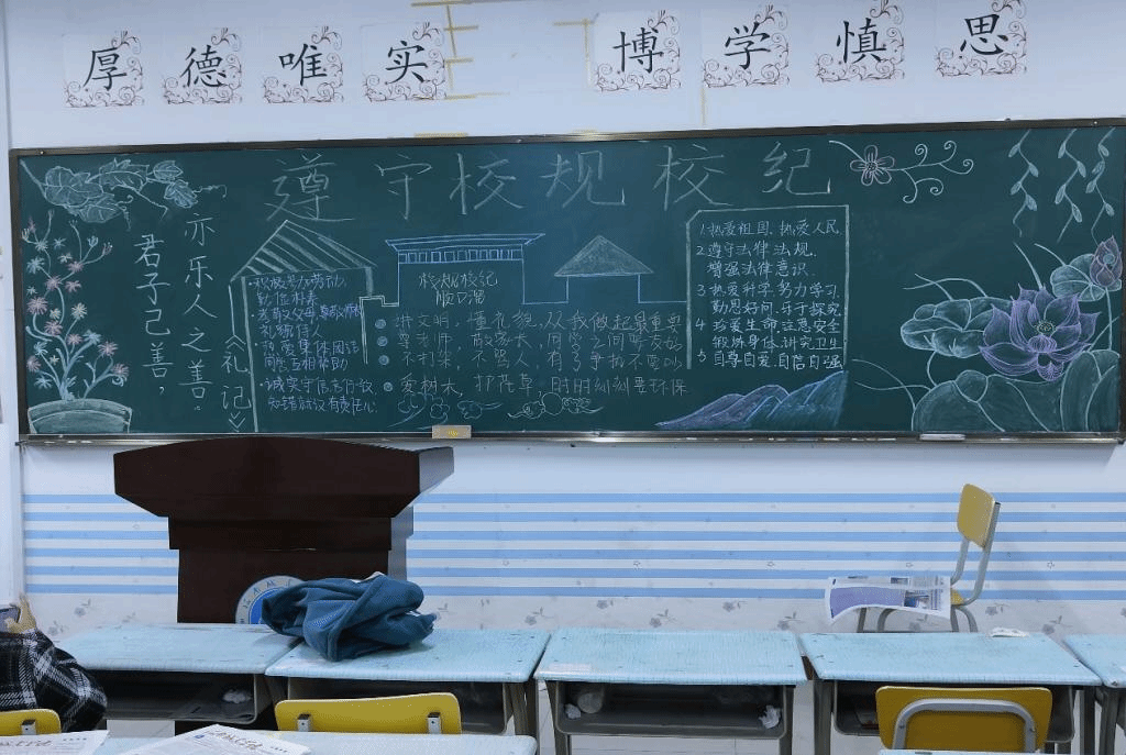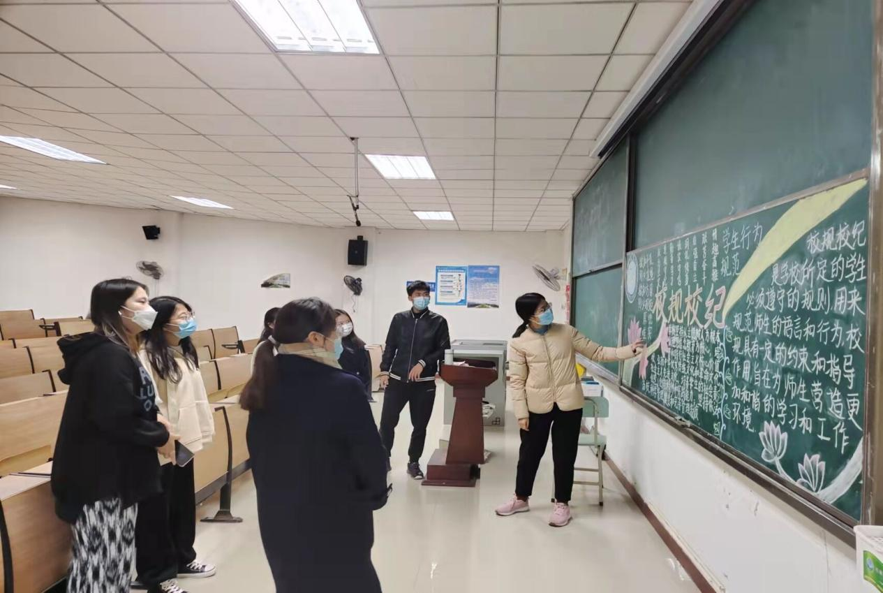 本次活动中,同学们积极参与,收集相关材料,一起构思,一起设计,一起动手绘制。一幅幅设计巧妙、绘制精美的板报一一呈现在师生面前,充分利用黑板报的宣传阵地,让学生们在耳濡目染中受到教育和启迪,为塑造“校风正,系风纯,学风浓”的高素质学生群体起到了良好的推动作用。随后,学院老师对各班板报成果进行评比,对同学们的作品给予肯定,鼓励同学们呈现更多更优秀的作品,并要将遵守校规校纪落实到具体行动上。