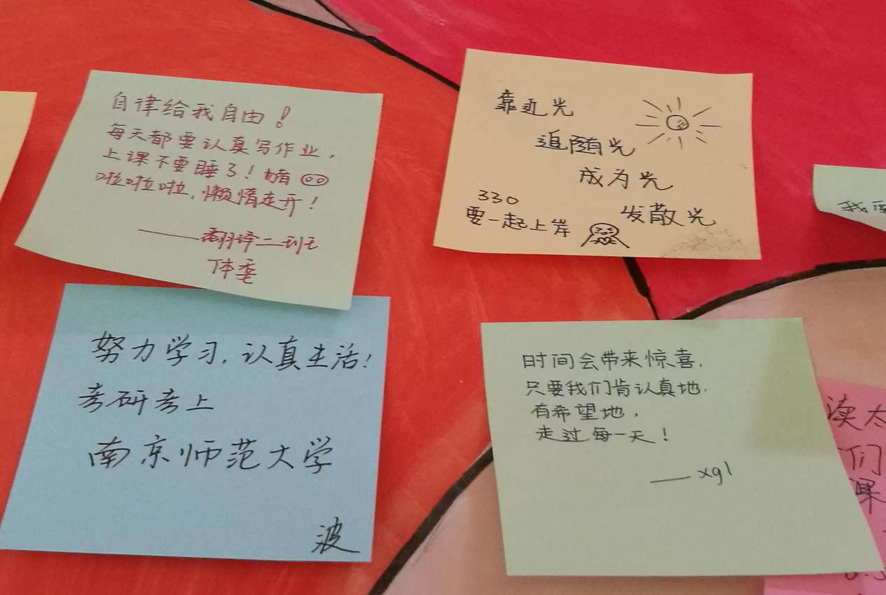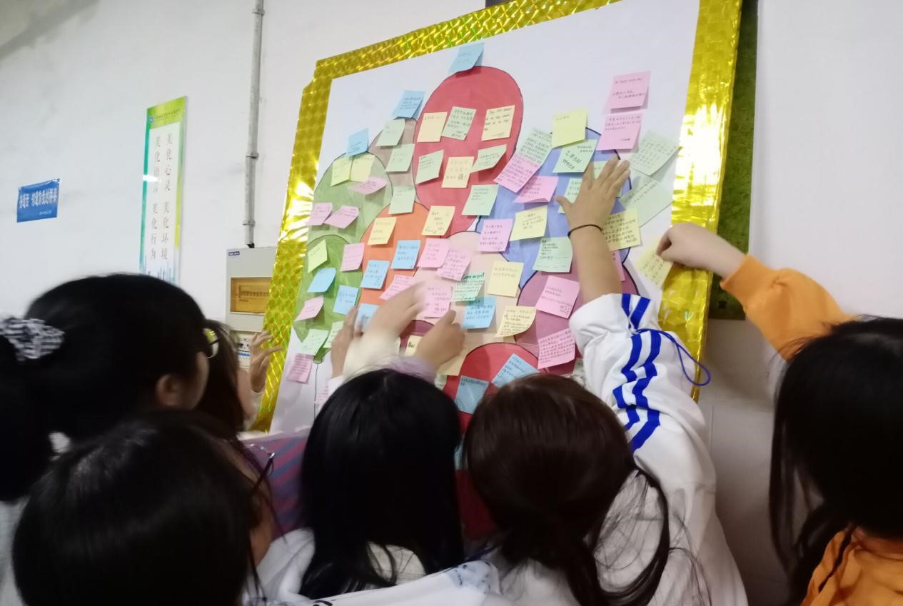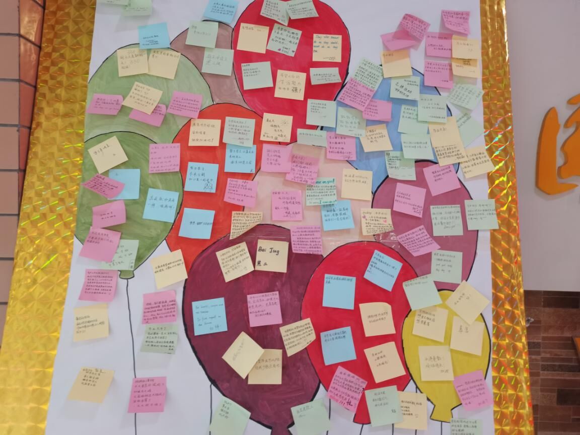 活动开始前,工作人员们精心准备了展板,展板的主题以气球和花盆为主要元素,寓意着茁壮成长的梦想正在悄悄萌芽,同时也表达着让烦恼随风而去的寓意。活动开始后,同学们积极参与活动,将自己的梦想、内心难以启齿的话或烦恼,以匿名的方式写在便利贴上然后贴在“气球”上。本次活动,学生们敞开心扉,把心中的梦想埋进土壤,把心中的烦恼大声“贴”出来,既是对自己心灵的关注,也缓解了内心的压力。
