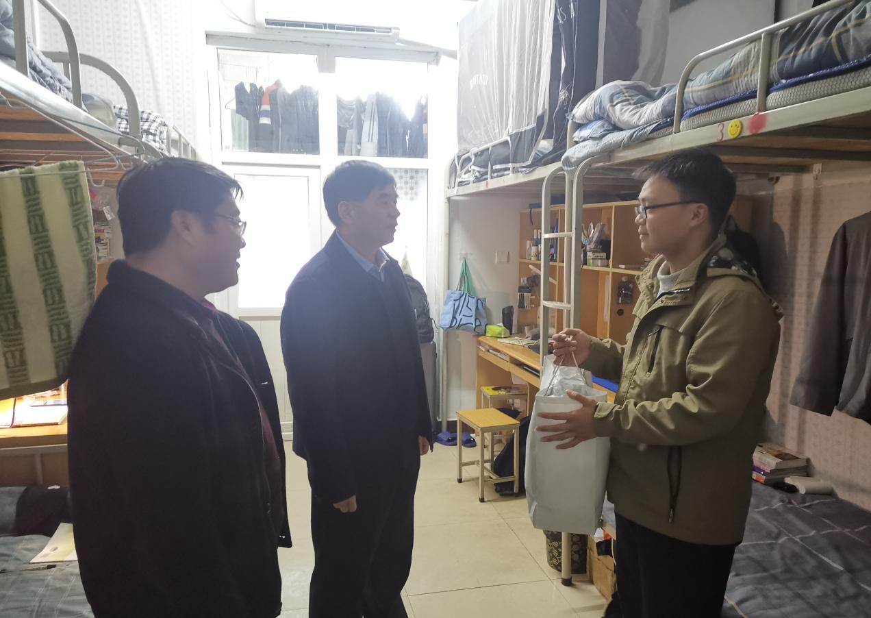 12月9日,副校长宿金勇来到欧美精品一区二区学生宿舍,走访看望欧美精品一区二区学生,为学生送上越冬物品,欧美精品一区二区副院长秦小锋陪同。