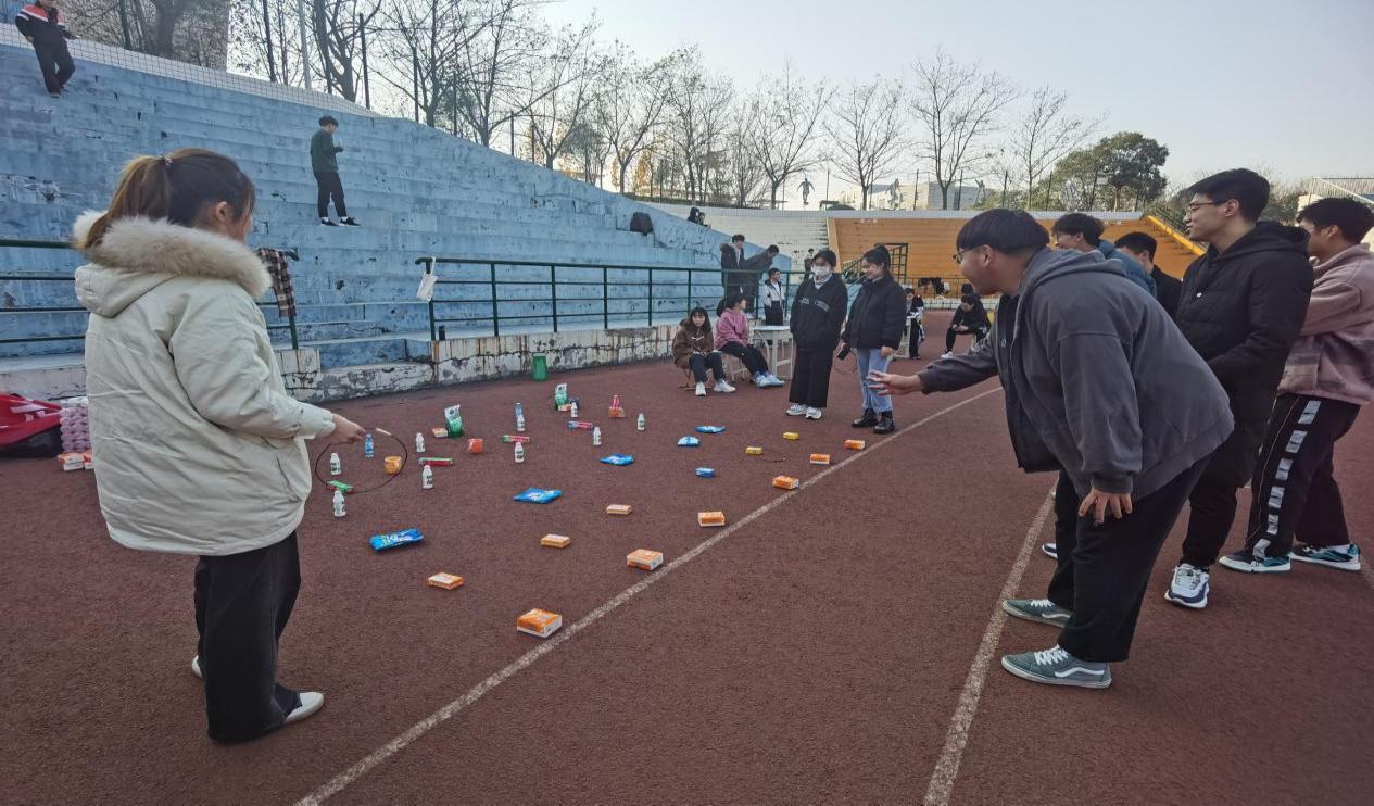 活动期间我院结合学院特色和学生需求,设立了七个趣味游戏,盲人击鼓、表演、投乒乓球、英文版你画我猜、颠乒乓球、飞花令和抢椅子游戏。同时,参与同学在此过程中可以赢得纸券以获得套圈机会套取奖品,趣味横生的游戏让同学们参与热情高涨,活动在一片欢声笑语中落下帷幕。