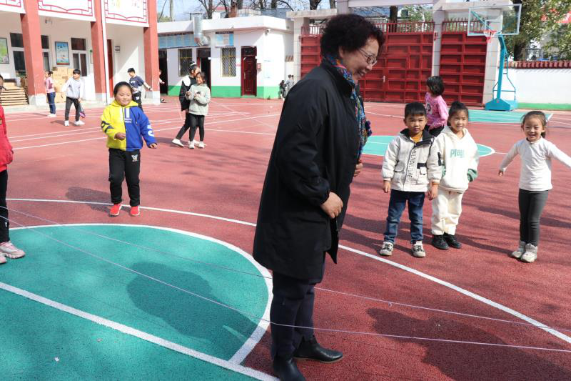(院党总支书记袁晓和学生们一起跳皮筋)