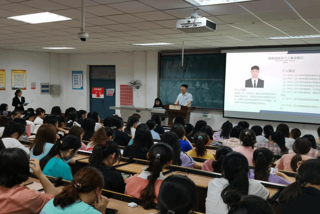 本次“青春榜样”报告团成员分别是来自城市建筑与规划学院、能源与建筑环境工程学院、艺术设计学院和管理学院的五位优秀学生代表。城市建筑与规划学院的16级学生张喻魁在校期间学习刻苦,成绩优异,获得了城乡规划与英语双学位。张喻魁向学弟学妹们分享道:“大学不是养老的地方,而是拼搏的地方”,表达出了他对大学生活的态度。能源与建筑环境工程学院的郭小雨分享了自己在大学期间积极参加各类比赛以及荣获佳绩的故事。“高效”是她获得各项荣誉的关键。艺术设计学院的贾芳婷于今年以优异的成绩顺利考入首都师范学院进行深造,三天只睡十个小时是她对考研的态度,贾芳婷跟同学们分享了她的人生格言:“自律者方得自由”。管理学院的18级学生岳少辉和王丹也作为报告团成员讲述了他们参与“第四节全国大学生城市管理”大赛和“青马工程”的奋斗学习历程,生动有趣而不乏教育意义,让在场的同学们受益匪浅。