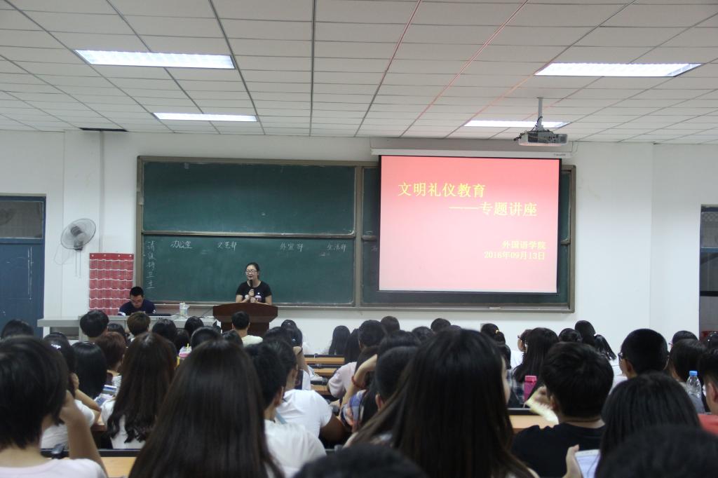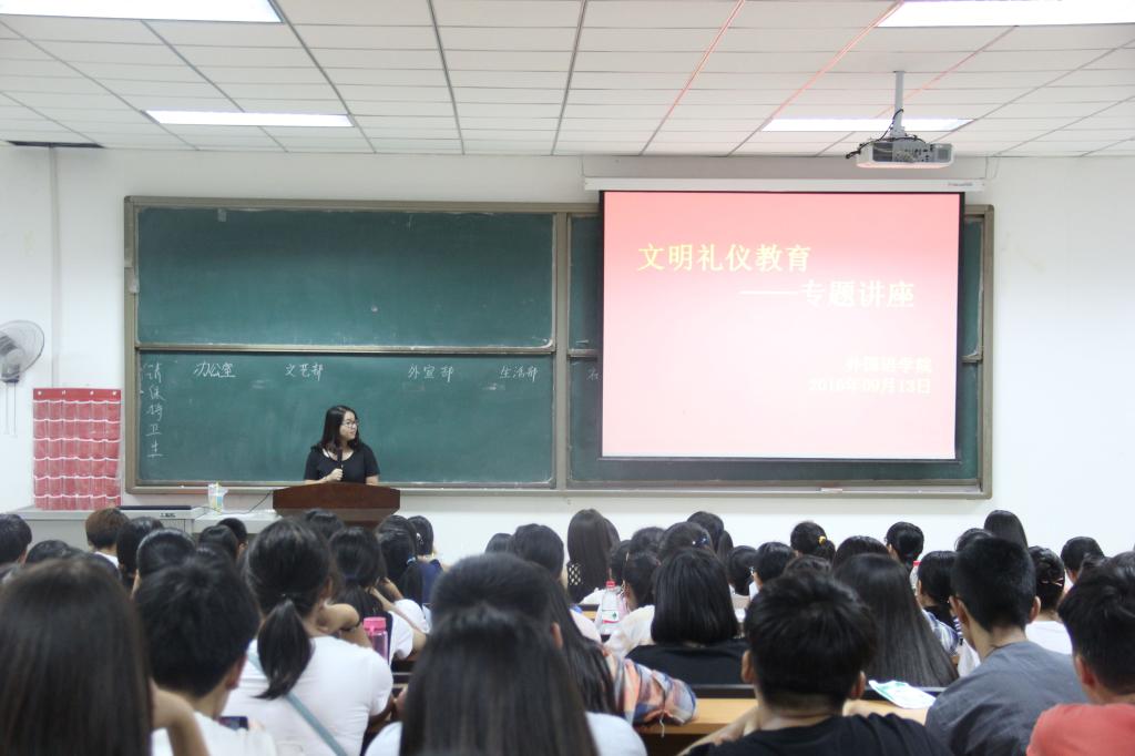 (通讯员 田果果 刘航园)为加强校园文明建设,提高我院学生的文明礼仪素养,欧美精品一区二区特于9月13日晚8:00在文管校区一号教学楼528开展了文明礼仪教育活动,全体大一大二学生参与活动。