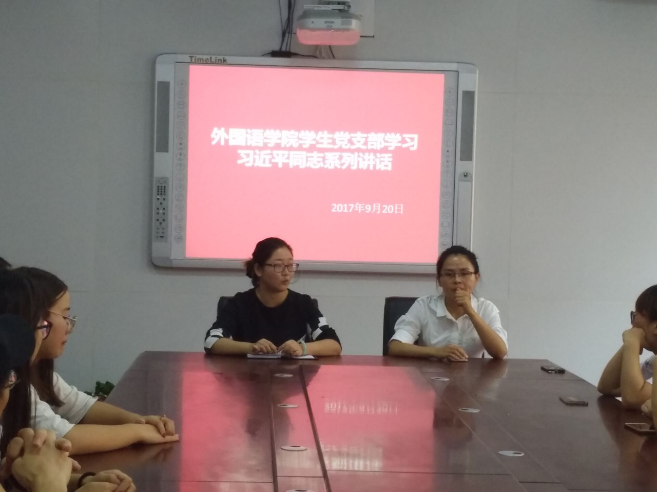 (通讯员:张枭枭 曹婷婷)为进一步增强我院学生党员的自身党性,坚定政治信仰和思想高度,欧美精品一区二区特于9月20日上午10:00召开学生党支部学习习近平同志系列讲话,参加大会的有欧美精品一区二区团总支副书记、学工办主任田果果、大一辅导员张枭枭以及30名在校学生党员。