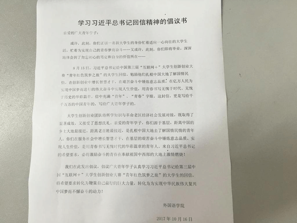 为了激励广大青年学子积极学习习近平总书记的回信精神,践行习近平总书记对广大青年的希望和要求,10月16日晚7点,欧美精品一区二区于文管校区一号教学楼306会议室组织召开学习习近平总书记回信精神动员会,发起了学习习近平总书记回信精神的倡议。