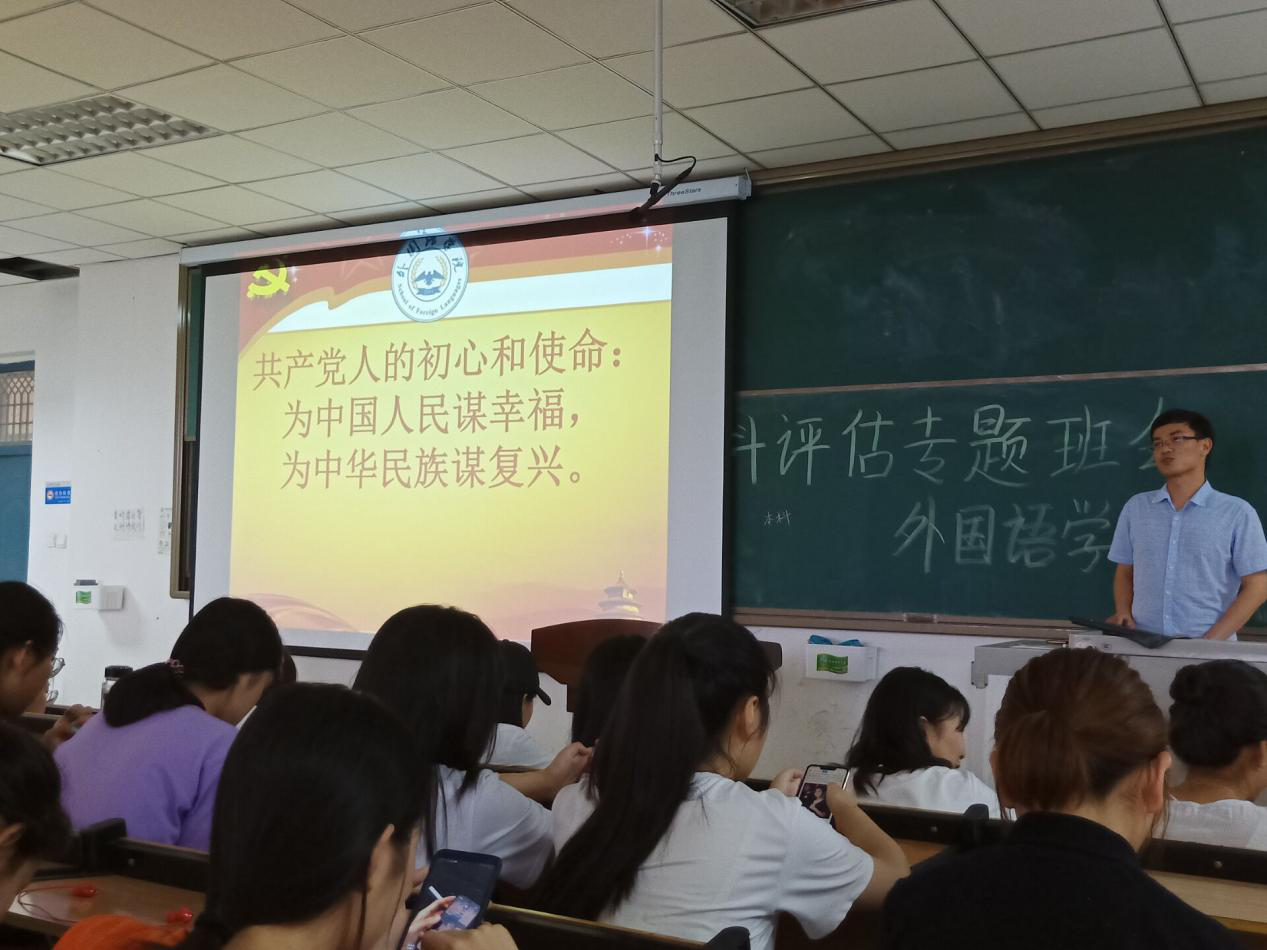 党的十九大报告中讲,中国共产党人的初心和使命,就是为中国人民谋幸福,为中华民族谋复兴。这个初心和使命是激励外语学院全体党员教师教书育人的根本动力,全体党员教师和学生同呼吸、共命运、心连心,提高教学质量,做好育人工作,永远把全体学生对优质教育的需求作为自己的奋斗目标,以诲人不倦的教育态度和殚精竭虑的精神面貌服务好每一位学生。