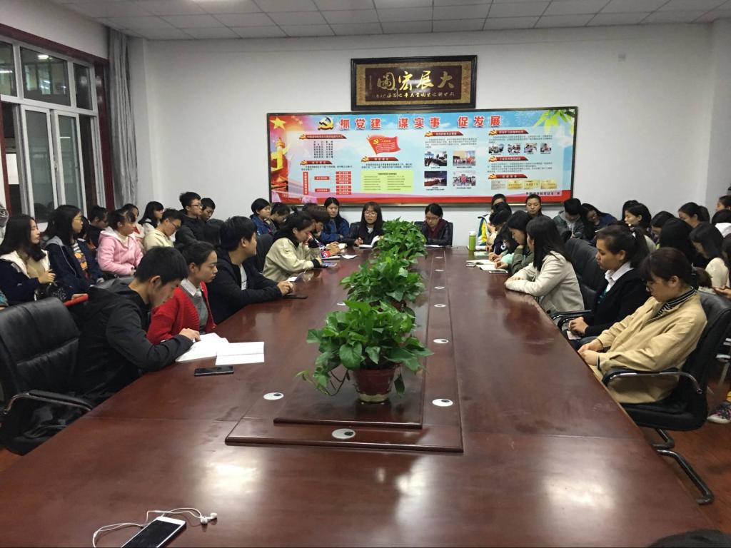 (通讯员:张枭枭)为了深入贯彻落实团中央关于“从严治团”的总体部署以及“一学一做”教育实践的相关要求,全面推进团干部队伍建设,切实增强团员的先进性和光荣感,11月6日晚上7点,欧美精品一区二区于文管校区306会议室举行了团干部学习交流会,欧美精品一区二区辅导员张枭枭、学生会成员及各团支部班长团支书参加了本次会议。