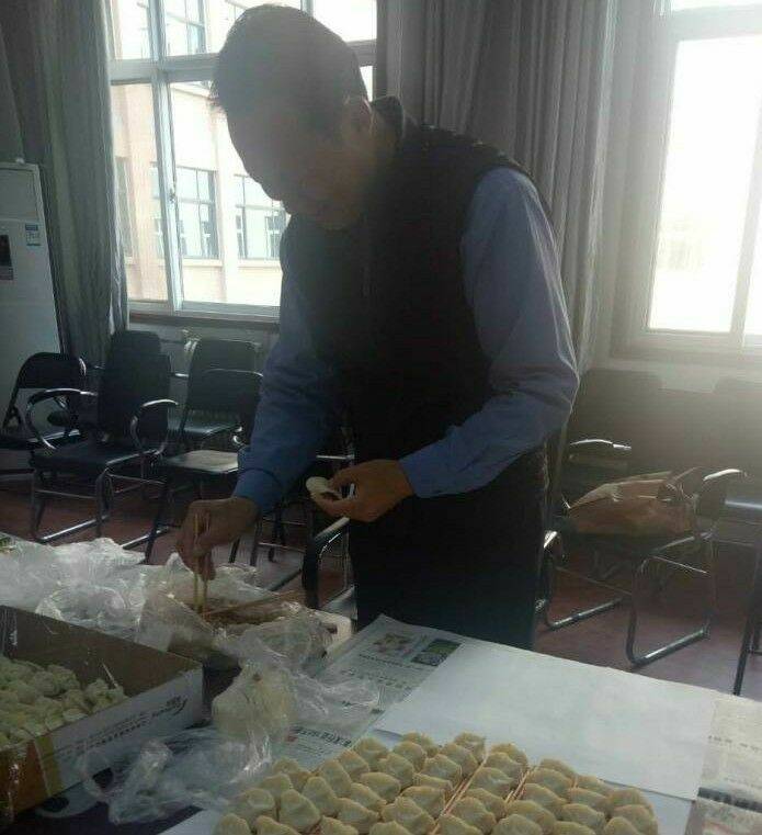 上午11点,老师们就纷纷来到学院会议室开始包起饺子。大家分工有序、忙而不乱,一边忙碌一边相互对饺子形状点评。不一会儿,热腾腾的饺子出锅了,幸福的笑容展现在每个教工脸上。虽然室外寒气袭人,但会议室内欢声笑语、温暖四溢。