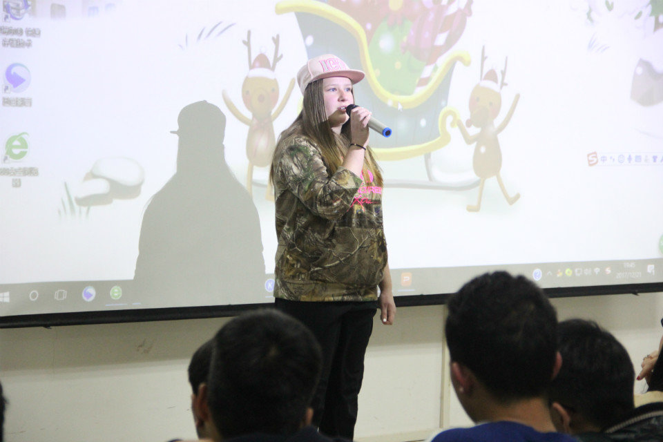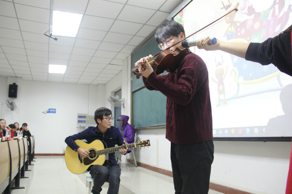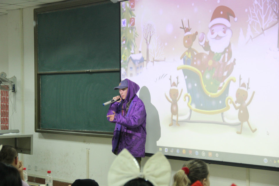 本次圣诞晚会的主题是“星夜狂欢,悦动圣诞”。伴随着欢快、动感的音乐,一场俏皮的开场街舞掀开了晚会的神秘面纱。随后,英文话剧《Cinderella》更是博得声声喝彩,更有外教Barbara与同学们同台合唱名曲《Jingle Bells》,引发了场下观众们一片尖叫声和欢呼声,会场的气氛持续升温。梁佳佳的歌曲《The Show》、张玉龙的诗歌朗诵《Youth》又将同学们带入了一个静谧、祥和的圣诞之夜。在接下来的游戏环节“lucky Drag”中,为学生送上惊喜。最后,晚会在抽奖活动后落下帷幕。