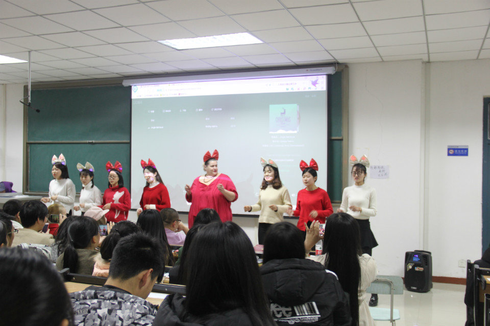(通讯员:张枭枭 姜晴晴)12月21日晚6点30分,欧美精品一区二区与国际教育学院在一号教学楼328教室联合举办圣诞狂欢晚会。参加此次活动的有外教Barbara、Molly、Inna、留学生大山和刘华、及欧美精品一区二区和国际教育学院部分师生代表。
