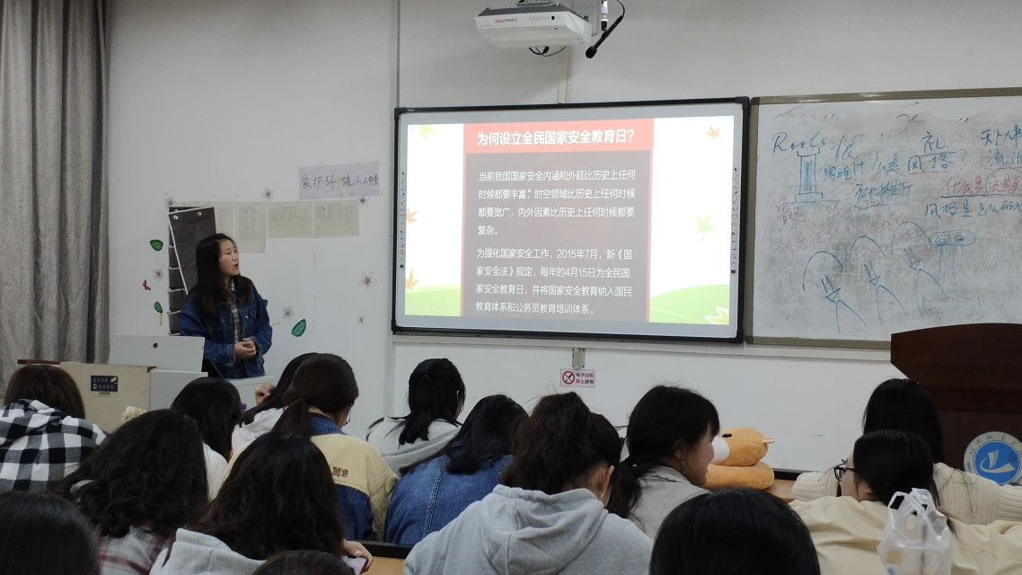各班团支书组织担任主题团日学习活动的主讲人。在此次全民国家安全教育日主题团日活动上,团支书讲述了《宪法》《国家安全法》《反恐怖主义法》《反间谍法》等有关国家安全的法律,和同学们一起学习了习近平总书记的“总体国家安全观”,并组织观看相关反间谍国家安全教育视频。此次主题团日活动让每个学生更加了解国家安全新形势,让国家安全教育意识深入人心。