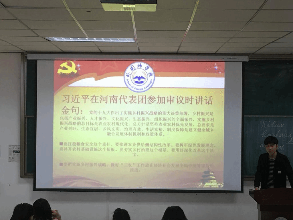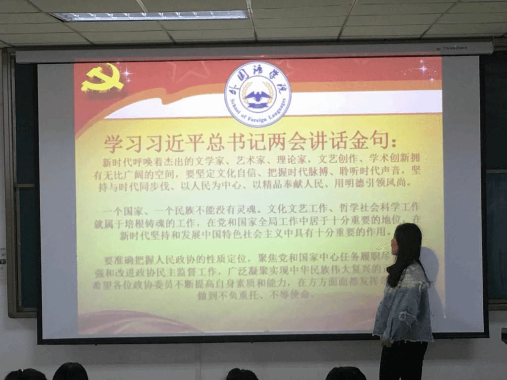 主题团日活动上主要学习了习近平总书记在全国两会上面的讲话金句,特别是习近平总书记所强调的文学艺术创造、哲学社会科学研究需要搞清楚为谁创作、为谁立言的问题,与英语和翻译专业同学的学习息息相关;学习了李克强总理在十三届全国人大二次会议上作的《政府工作报告》精神,知晓了“稳定和扩大就业、鼓励更多社会主体创新创业、发展更加公平更有质量的教育”的政府工作任务,新时代大学生备受党的政策鼓舞;学习了相关专家、学者对于全国两会精神的解读文章;观看了相关会议视频。广大团员纷纷表示:此次学习让团员们了解党的理论、政策、路线、方针,让两会精神深入人心。