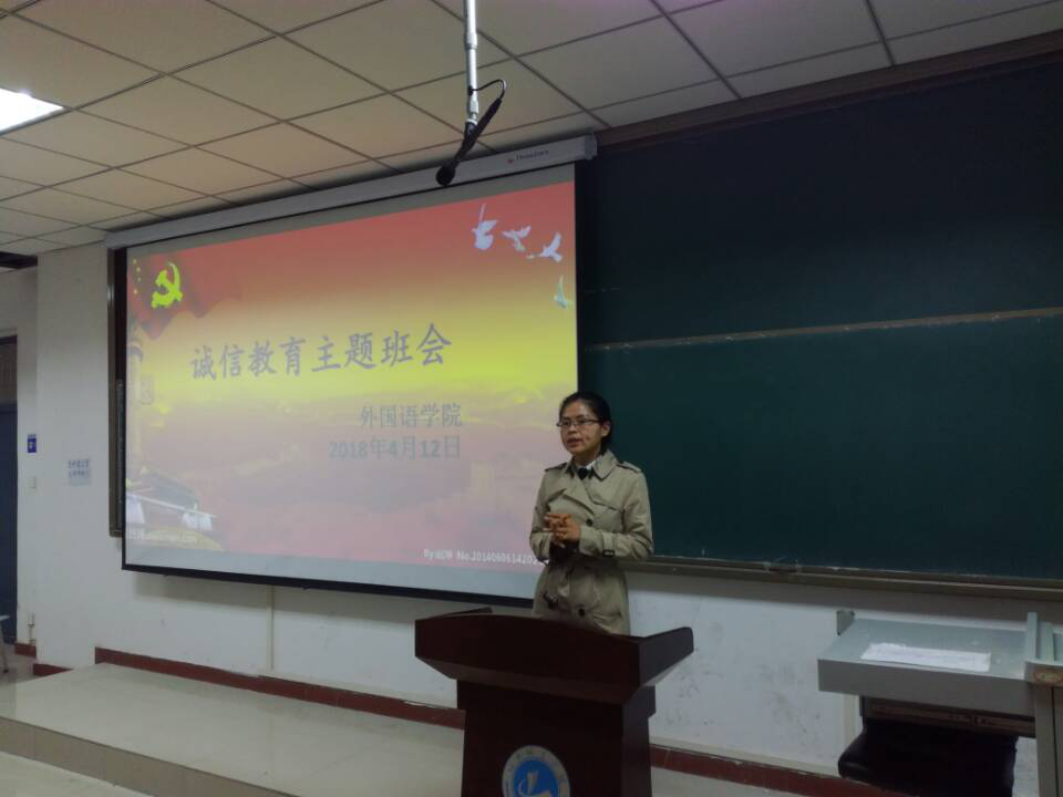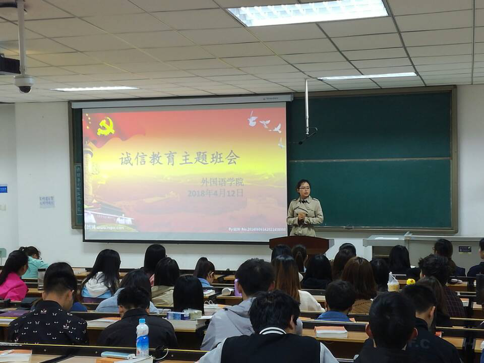 2018年4月12日上午,各年级学生积极配合学院活动安排,在文管校区一号楼326教室召开以诚信教育为主题的班会。整个活动中,张枭枭老师以“诚信”为题发表精彩讲话,并从国家助学金和生源地信用贷款对比中讲解了高校资助政策和征信政策,引导学生了解资助政策,认识诚信贷款、诚信做人的重大意义;中途观看诚信还贷视频和学生考试失信视频,引导学生自省其身;最后张枭枭郑重领读诚信倡议书。