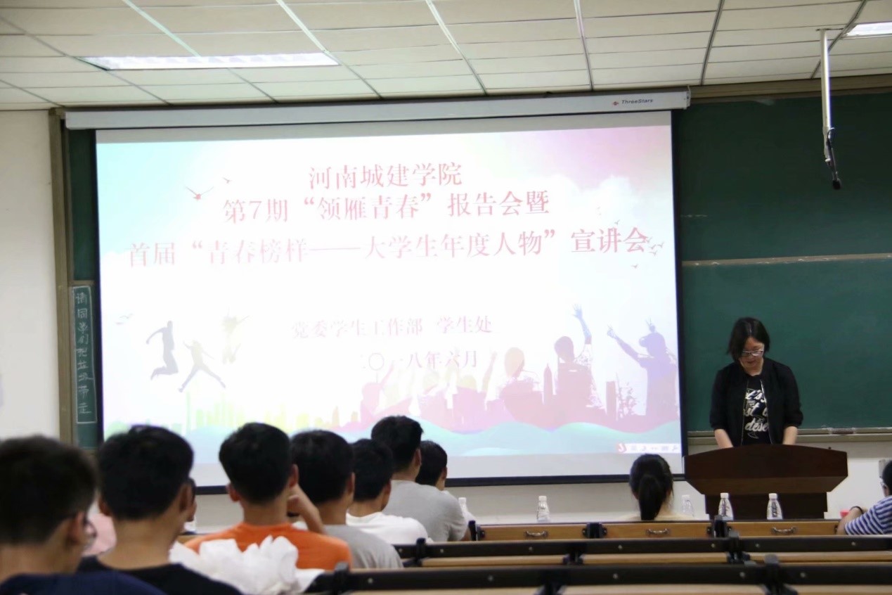 会议伊始,田永果详细介绍了本次活动内容和意义。随后,欧美精品一区二区学工办主任田果果宣读河南城建学院首届“青春榜样——大学生年度人物”名单,对获奖同学表示热烈祝贺。最后我校5名首届“青春榜样——大学生年度人物”分别做了汇报。管理学院隋欣讲述了如何煅造自己的经验,她希望同学们能够成为一个健康的人,做一个丰富的人,学会和自己相处,做一个和谐而幸福的人;土木与交通工程学院谭嘉诺说大学为他提供了从懵懂走向成熟的契机,让他学会独立的做出判断和抉择,并对自己的选择负责任;市政与环境工程学院刘学亮谈自己的大学时光,他成功的要点是:机会总是留给有准备的人;能源与建筑环境工程学院的金江涛说,四年大学生活,就是在尝试中不断否认、不断怀疑又不断肯定自己的过程;欧美精品一区二区门海月分享到,在大学里要读好“两本书”,一本是有字书,另一本是无字书,不畏艰辛,才能创造精彩的大学生活。