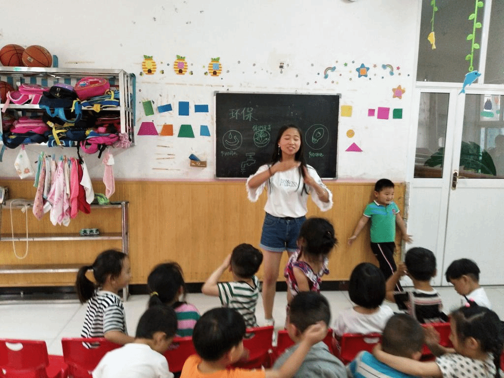 活动中,志愿者们为孩子们带来六一儿童节的节目,孩子们情绪高涨,为接下来的活动做了良好的铺垫。随后,志愿者们用诙谐幽默易懂的语言为孩子们解释环保的概念以及意义,讲解各个环保标志的含义,生活中处处有环保,从小事做起,从自我做起。最后,志愿者教孩子们学唱环保歌,孩子们积极配合,气氛融洽。