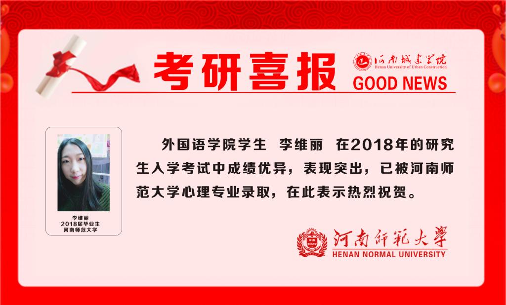(通讯员:张枭枭)欧美精品一区二区近年来高度重视学生的考研工作,随着2018年研究生招生复试工作的陆续展开,我院学生被国内外高校录取的捷报频频传来。据悉,李维丽同学以笔试第一及面试第一的优异成绩被河南师范大学心理专业录取。