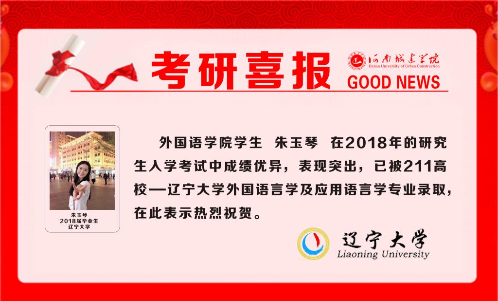 (通讯员:张枭枭)欧美精品一区二区近年来高度重视学生的考研工作,随着2018年研究生招生复试工作的陆续展开,我院学生被国内外高校录取的捷报频频传来。据悉,朱玉琴同学已被211工程学校---辽宁大学外国语言学及应用语言学专业录取。