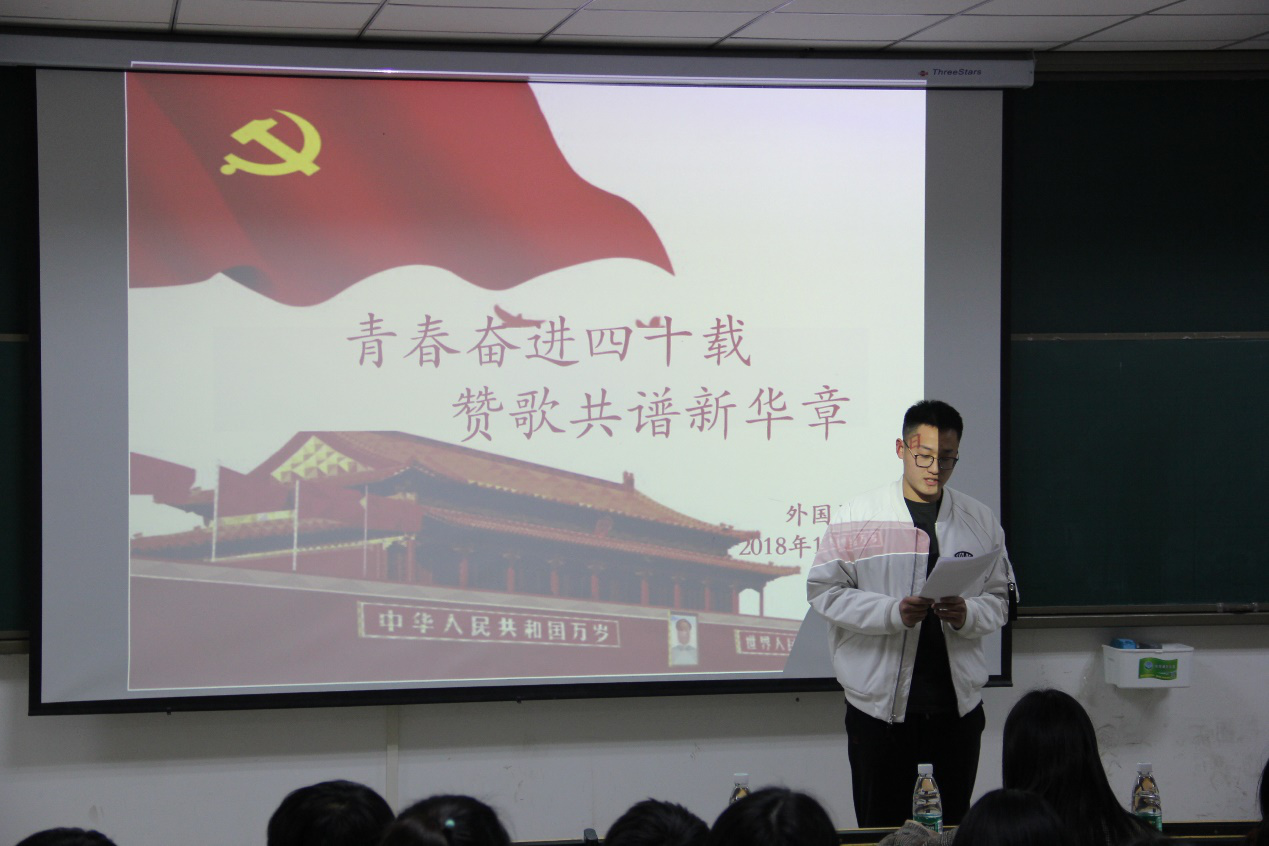 (通讯员:赵星辰宋琰)为庆祝改革开放40周年,增强我院大学生的爱国精神,号召大学生同心共筑新时代中国梦,欧美精品一区二区于11月27日下午6:30在文管校区1号教学楼326教室举办“青春奋进四十载,赞歌共谱新华章”比赛。比赛以合唱、独唱、朗诵三种形式进行,欧美精品一区二区共7个班级参加本次比赛,党总支副书记于修涛主持,评委老师张湘雨、景丽亚。