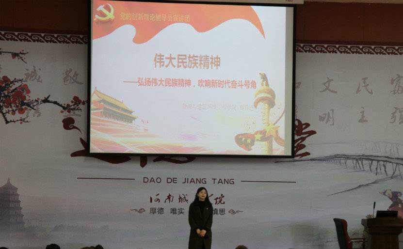 “伟大民族精神”精彩的宣讲报告,好似策马扬鞭,激发大学生奋勇前进;犹如霜染红叶,点燃了同学们如火激情;仿佛滚滚江河,涤荡莘莘学子肺腑心肠,使习近平新时代中国特色社会主义思想的熠熠光芒洒遍城建校园。