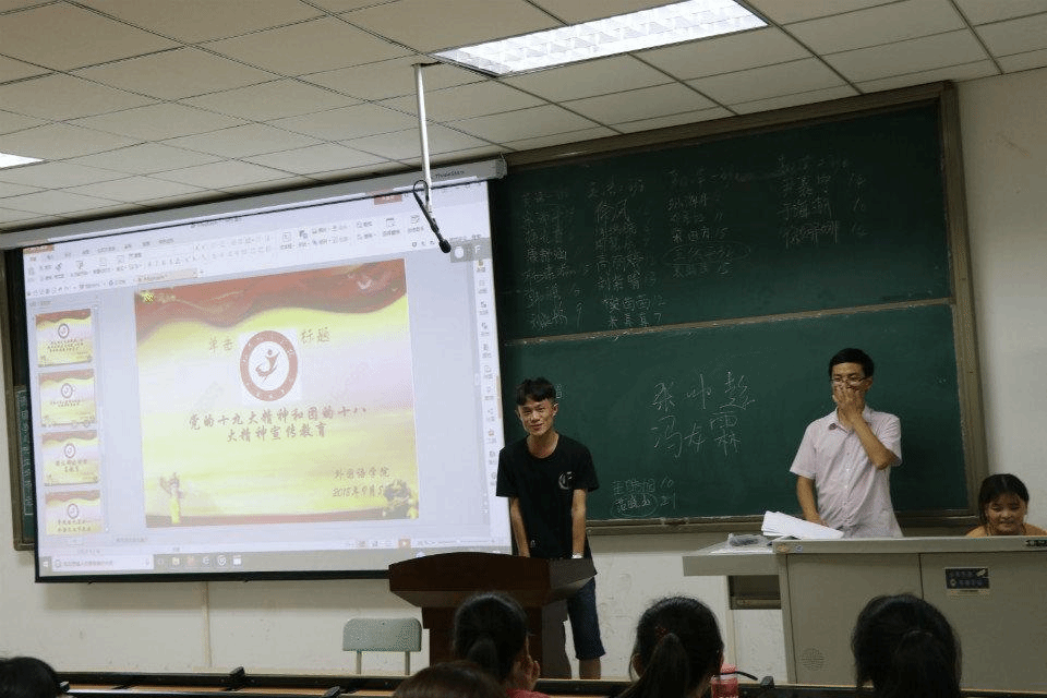 (通讯员:田果果 林颖)为加强我院新生深入学习领会党的十九大精神和团的十九大精神,9月9日下午2点在文管校区一号教学楼326教室组织新生学习党的十九大精神和团的十九大精神。欧美精品一区二区18级辅导员老师赵星辰为主讲人,全体大一新生参加此次活动。
