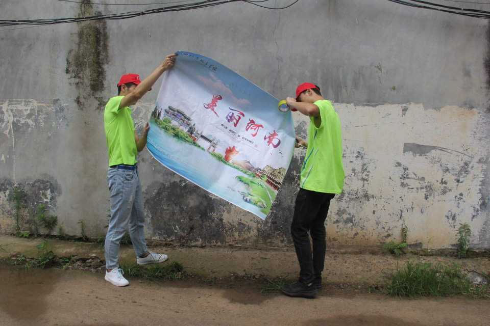 7月31日,我院美丽中原实践团分为三组,第一组前往村头和村委会,张贴有关的宣传海报,引导村民前来观看学习;第二组志愿者前往村中聚集人多的地方,采访他们认为村中现在的环境问题,村民们非常配合,指出主要是水资源污染以及空气污染问题,村民们认为将这两大问题解决,村庄将会是一个全新的面貌。第三组则前往村中各个地点清洁卫生,让村庄变得更加干净,为村民做出示范作用。