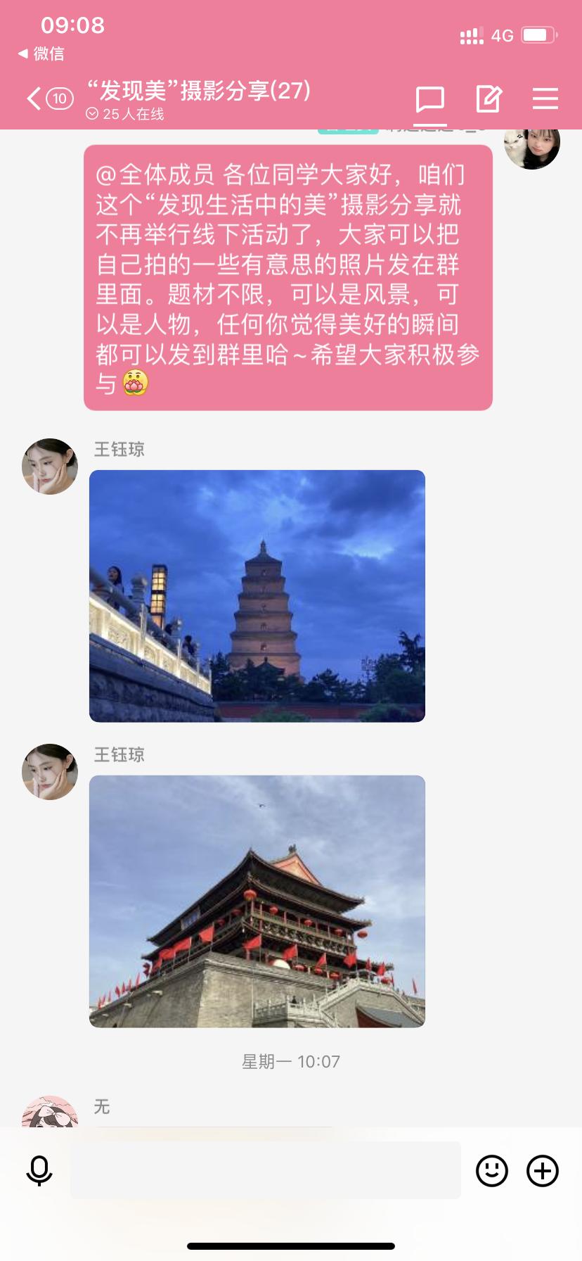 活动中,大家积极拍摄身边的美景、美食等景象,并分享至群中。每一张照片都是同学们心理状态的折射,这不仅引发了个人对自己心理状态的关注与思考,也让同学们更加重视心理素质的培养与心理健康教育的重要性。同学们在线上积极交流自己的创作背景与心得,从而引出所遇到的问题、困难,大家踊跃发言,一起讨论解决问题的方法。通过交流,同学们了解到更多解压的方式去不断调整自己的心态,以积极乐观的态度去面对生活,感受生活,融于生活,以此来促进自身人格的健全发展。