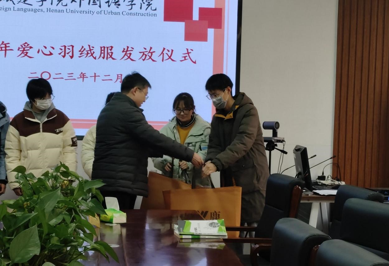 王东旭为受资助学生发放爱心羽绒服并发表讲话,他深切表达了学院对他们在学习和生活上的关心和关怀,并鼓励他们大学期间自强自信自立,勇立鸿鹄之志;厚植家国情怀、勇担历史使命;走上社会后要胸怀感恩之心,勇挑社会责任。受资助的学生代表进行发言,纷纷表示一件棉服,穿在身,暖在心,学校的贴心与爱心让这个冬天不再寒冷,今后一定会加倍努力学习,争取用实际行动来回报学校和社会。