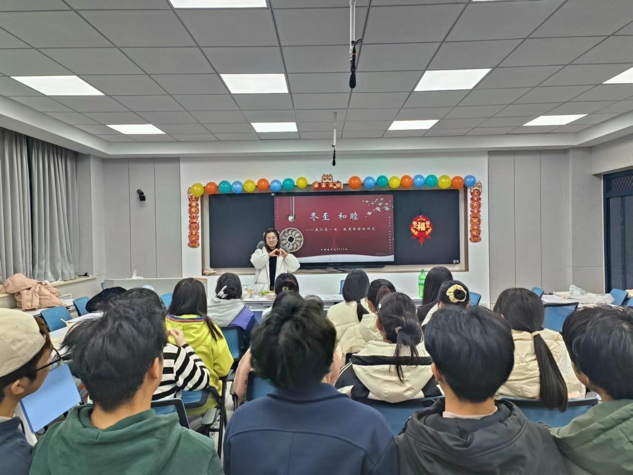 (通讯员 王佳瑶)冬至是我国传统24节气之一,冬至吃饺子是我国北方的传统习俗。为了让同学们感受到浓浓的节日氛围,一起度过欢乐祥和的冬至,欧美精品一区二区1324222团支部在2023年12月22日于美荟楼317智慧教室组织“冬至和睦”主题团日活动,2022级辅导员罗孟阳出席本次活动。