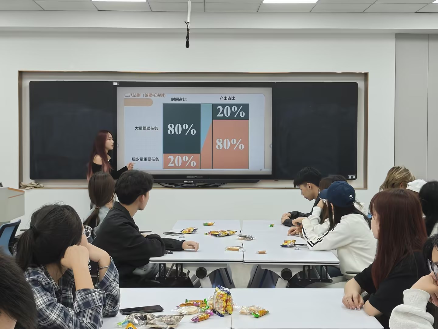 论坛伊始,靳真真以“作为学生干部,你有什么收获”的问题引入,点明了学生干部要发挥的榜样带动作用及他们自身要培养的全方位能力。学生会执行主席黄佳慧分享了实用的时间管理工具和技巧,详细介绍了如何合理安排课程学习、社团活动和个人兴趣,使自己的大学生活更加充实和高效。