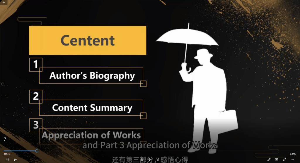 活动面向我院全体学生,鼓励学生推荐自己喜欢的名著,视频作品语言可为英语或日语,双语字幕;学院初筛后,共有10个作品进入决赛。评委从内容、 画面、语音语调、视频整体效果等方面打分,最终评选出一等奖一名,二等奖3名,三等奖6名。