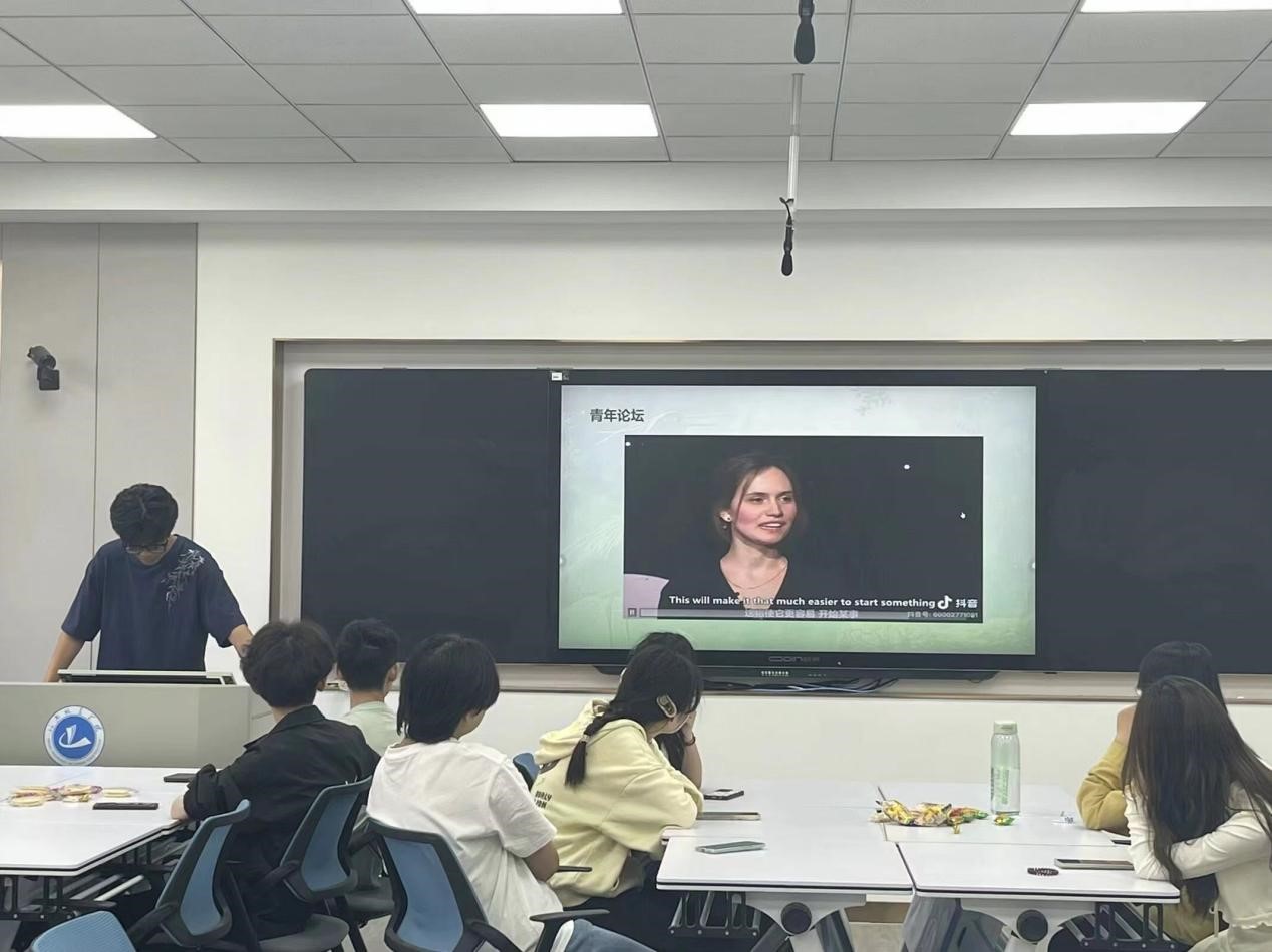 (学生们观看视频)