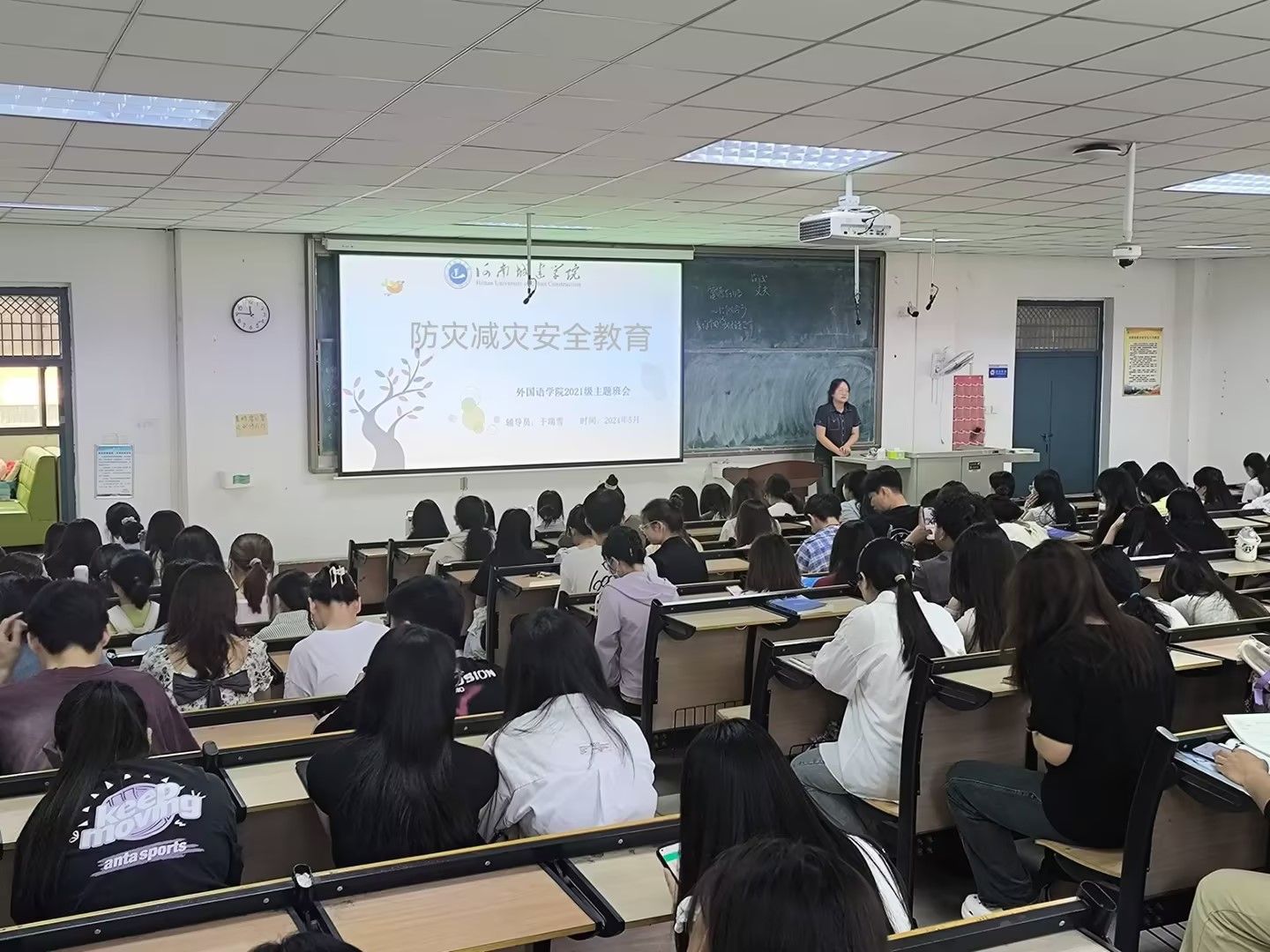 班会上,辅导员带领学生们集体学习遇到自然灾害时,应如何正确躲避,把伤害降到最低;通过播放应急防灾微视频,向同学们宣传应急能力的重要性,号召同学们平时多学习防灾减灾科学知识,掌握应急避险技能。