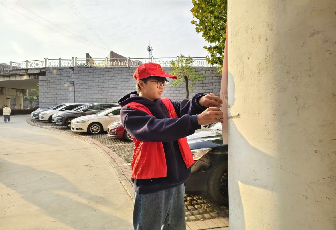 (志愿者清理广告贴纸)