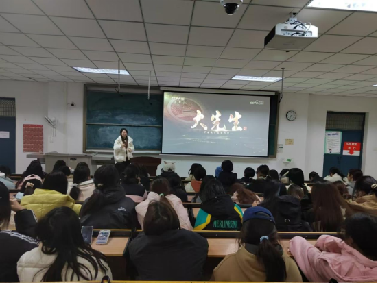 观看过程中,《百年巨匠·科技篇》里李四光、竺可桢等科技巨匠的卓越成就与不懈探索以及《大先生》中诸位先生的渊博学识和崇高品德深深吸引着同学们。他们专注科研、为国奉献的事迹,成为激励学生们前行的强大动力,现场同学们全神贯注,不时为大师们的伟大精神所动容。