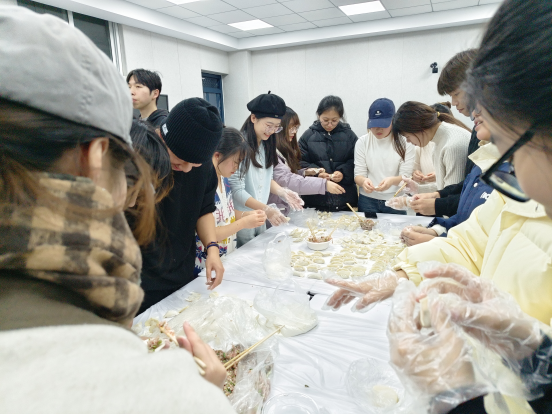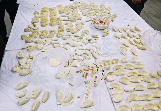 包饺子在中国传统文化中有团圆美好的寓意。活动中,师生相互配合,其乐融融,将浓浓的冬至情包进了饺子里。大家一边包着饺子,一边畅谈冬至的习俗和趣事,随着热腾腾的饺子端上桌,现场欢声笑语,热闹非凡。随后,阎玉茹老师组织同学们开展听歌识曲等游戏,并组织同学们合唱《愿你三冬暖》,一起送上满满的节日祝福。