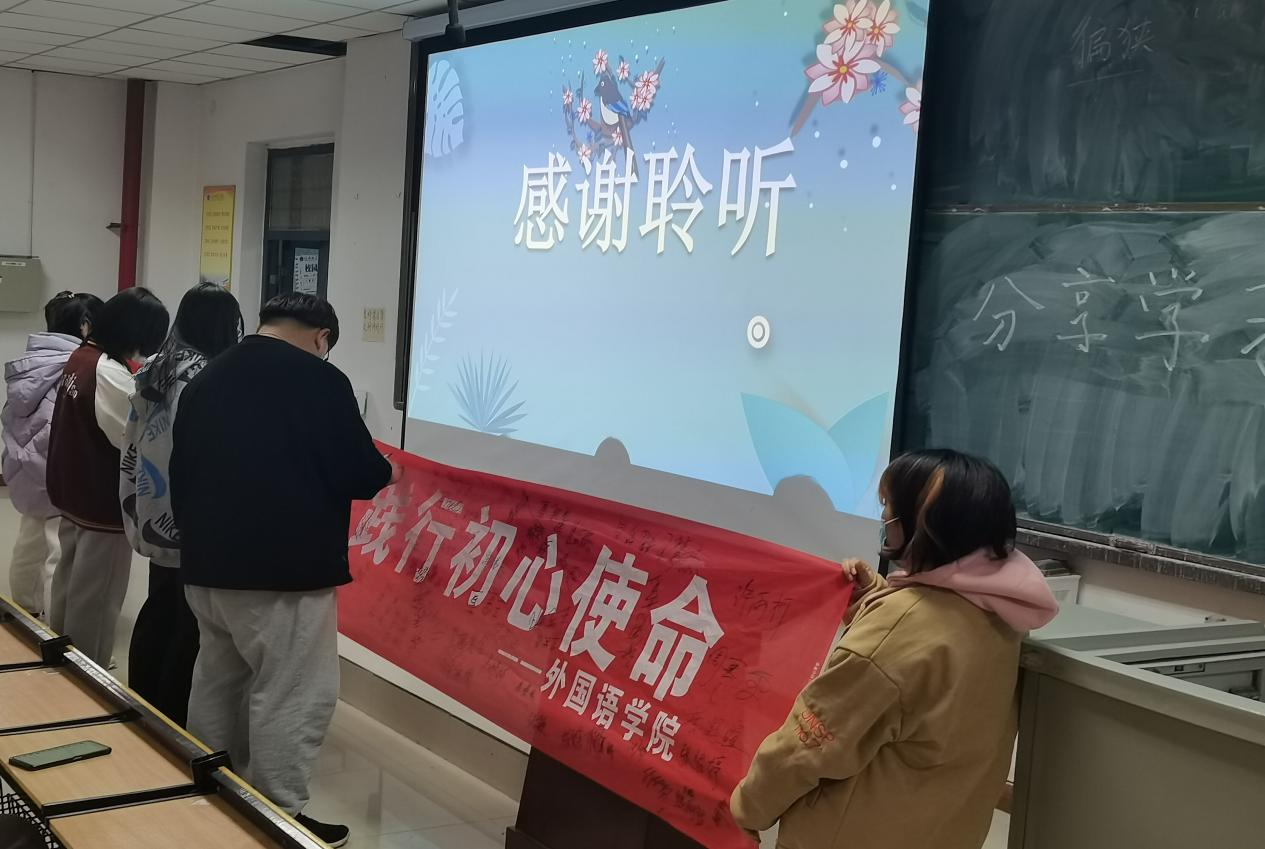 仪式伊始,我院高年级优秀学生代表分享学习经验。用亲身经历引导参会学生树立乐于学习、善于学习、终身学习的学习理念,让参会学子深入体会到良好学风的重要性。之后,学生代表就与会同学提出的问题给出自己的看法,并分享自己的解决办法。最后,仪式进入尾声,全体参会同学依次在横幅上签名,进一步明确现阶段的目标。