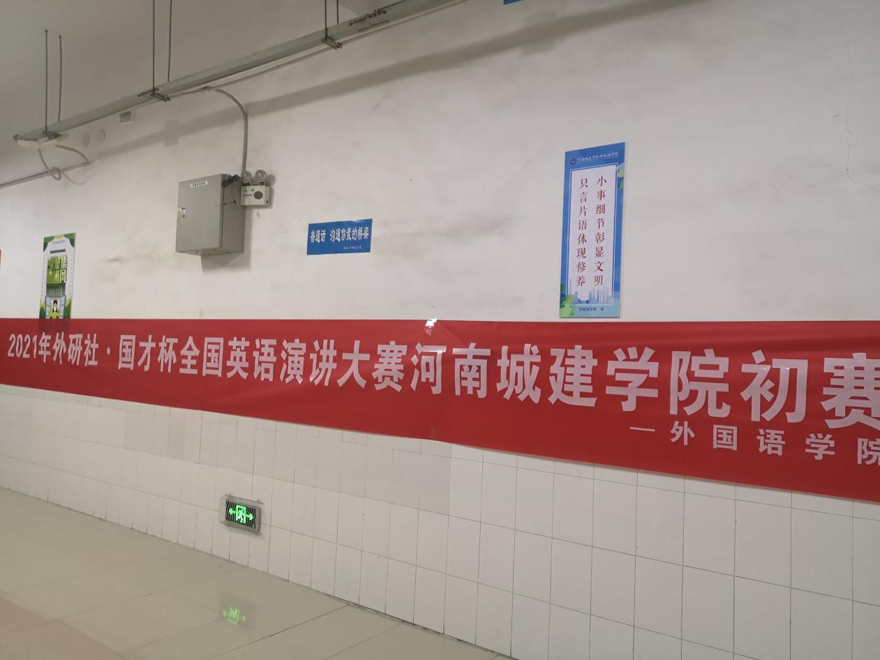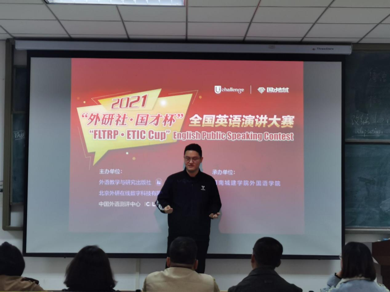 (通讯员 张湘雨)10月22日晚,2021“外研社·国才杯”全国英语演讲大赛河南城建学院初赛在和谐校区1号楼326教室落下帷幕,来自全校10个院系的32名同学参加了本次大赛。经过定题演讲和即兴演讲两个环节的激烈角逐,大赛产生特等奖一名、一等奖两名、二等奖四名、三等奖五名,并最终选拔出两名同学代表河南城建学院参加省赛。