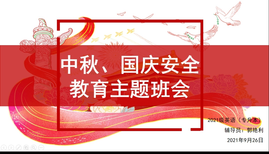 (通讯员 于瑞雪 王佳娟)国庆长假将至,为了做好有关国庆假期安全教育方面的工作,进一步提高学生的安全和自我防范意识及自我保护的能力,保障学生秋季顺利返校入校。欧美精品一区二区组织各班开展“喜迎国庆,安全随行”安全教育主题班会。