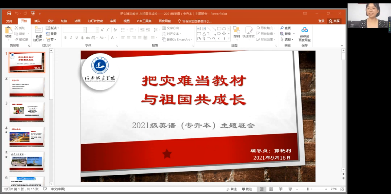 (通讯员 于瑞雪 王华夏)为宣传防汛救灾中优秀典型的先进事迹,引导青年学生客观认识疫情,做好科学防控,把灾难当教材,把困难当磨砺,在具体实践中厚植爱国主义情怀。9月16日,欧美精品一区二区于钉钉直播平台组织2021级新生开展以“把灾难当教材,与祖国共成长”为主题的新生班会活动。