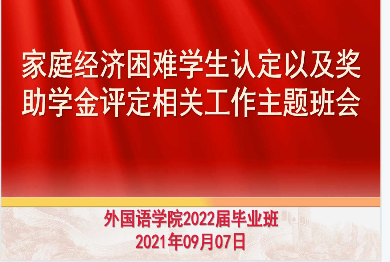 (通讯员 仝晓菲 王雨晴)家庭经济困难学生认定是实现精准资助的前提,是做好资助育人工作的重要基础。为进一步做好我院2021—2022学年家庭经济困难学生认定工作,欧美精品一区二区各年级于9月7日以腾讯会议、钉钉等线上平台分别召开困难生认定主题班会。
