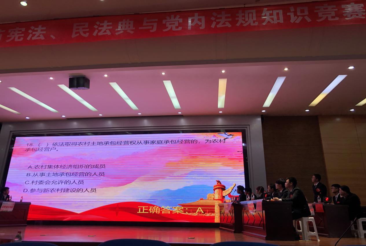 (通讯员 靳真真 黄烦)12月24日,由校纪委、党委组织部、党委宣传部、学生工作部(处)、党委保卫部和校团委主办,法学院承办的河南城建学院第七届法律文化节宪法、民法典与党内法规知识竞赛决赛在行政楼学术报告厅举行。校党委副书记王靖出席活动并致辞。各学院党委书记、副书记、团学办主任、指导老师及志愿者代表400余人参加活动。