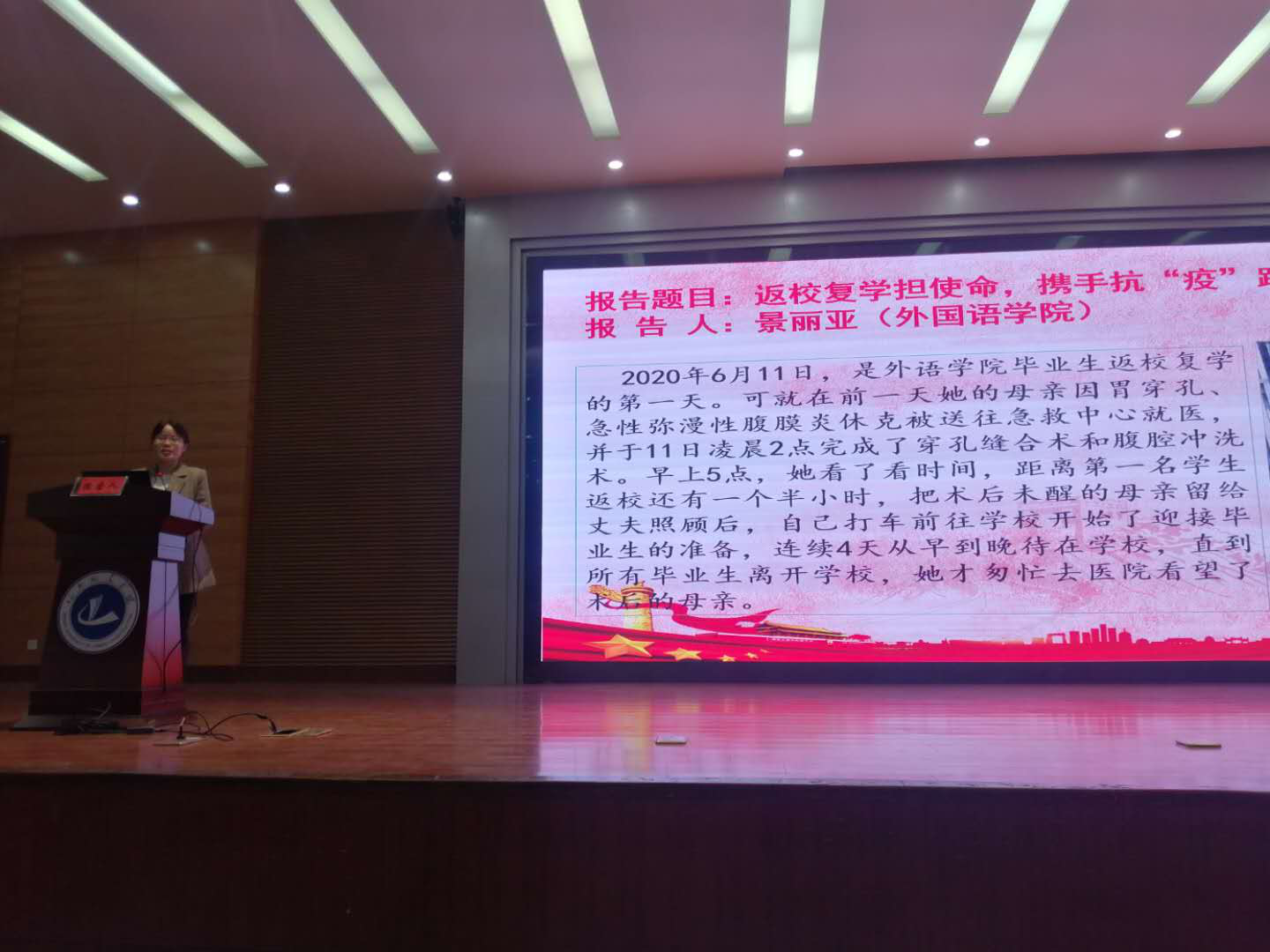 (通讯员 张雨梦)为广泛宣传我校涌现出的抗疫先进人物和典型事迹,彰显先进典型勇于担当、敢于拼搏的责任使命,弘扬抗疫精神,11月3日下午,河南城建学院抗疫先进事迹宣讲报告会在行政楼报告厅举行,欧美精品一区二区教师景丽亚、学生邵云在本次会议中作专题报告。