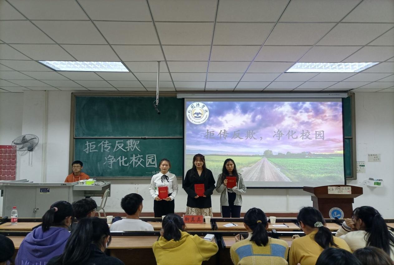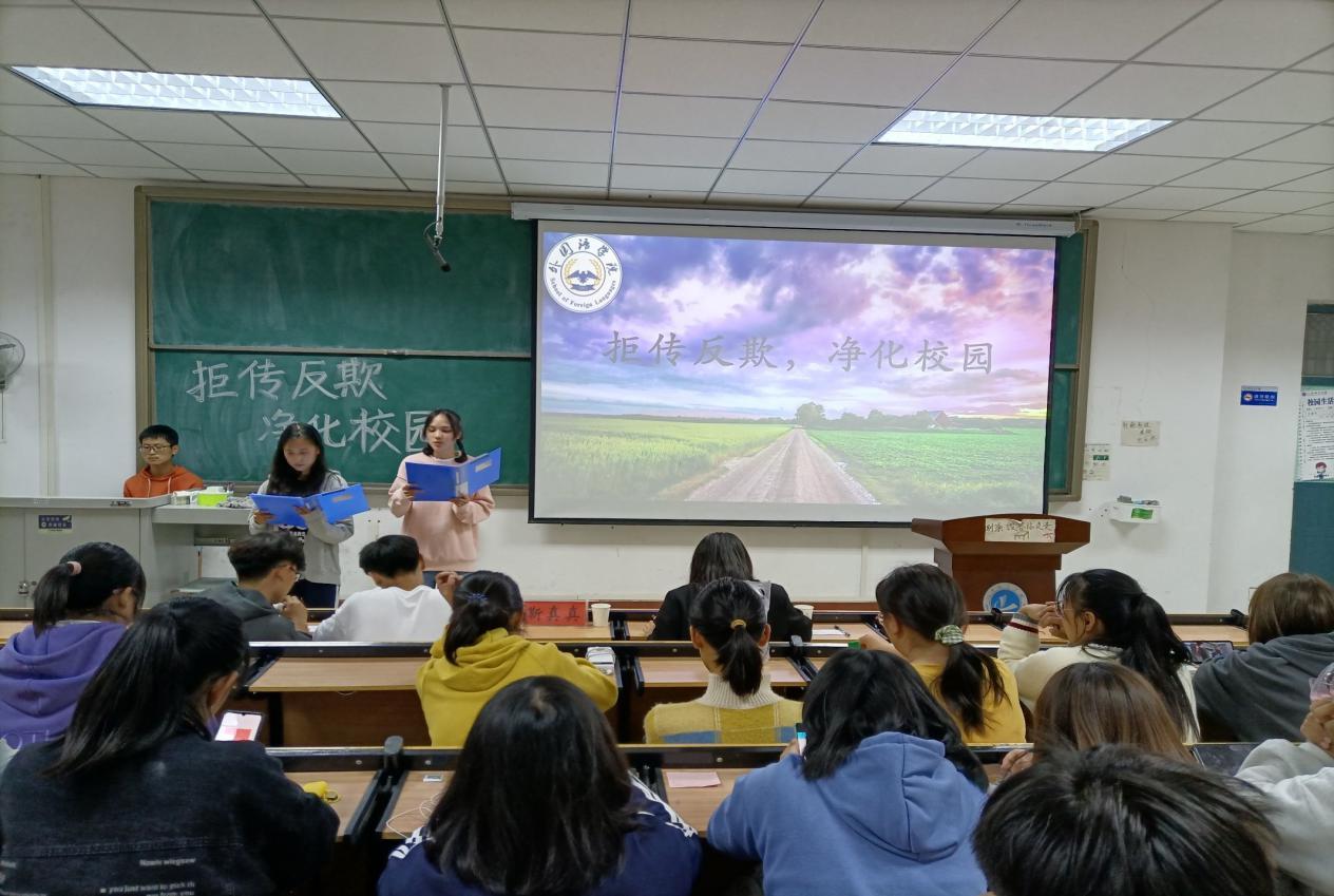 (通讯员 张雨梦 朱梦佳)为加强对传销危害的宣传,引导学生自觉抵制、远离传销,积极参与打击传销活动,弘扬社会主义核心价值观,加强学生道德建设,共建诚信校园,10月30日晚上7点,欧美精品一区二区在和谐校区一号教学楼328多媒体教室举行“拒传反欺,净化校园”短视频大赛,辅导员靳真真、张雨梦、程燕霞和全体大一学生参加了此次活动。