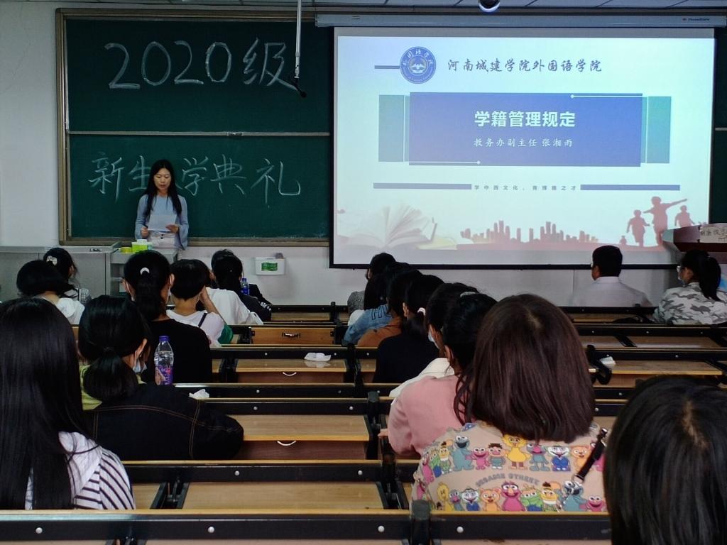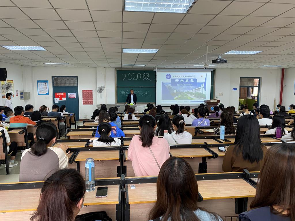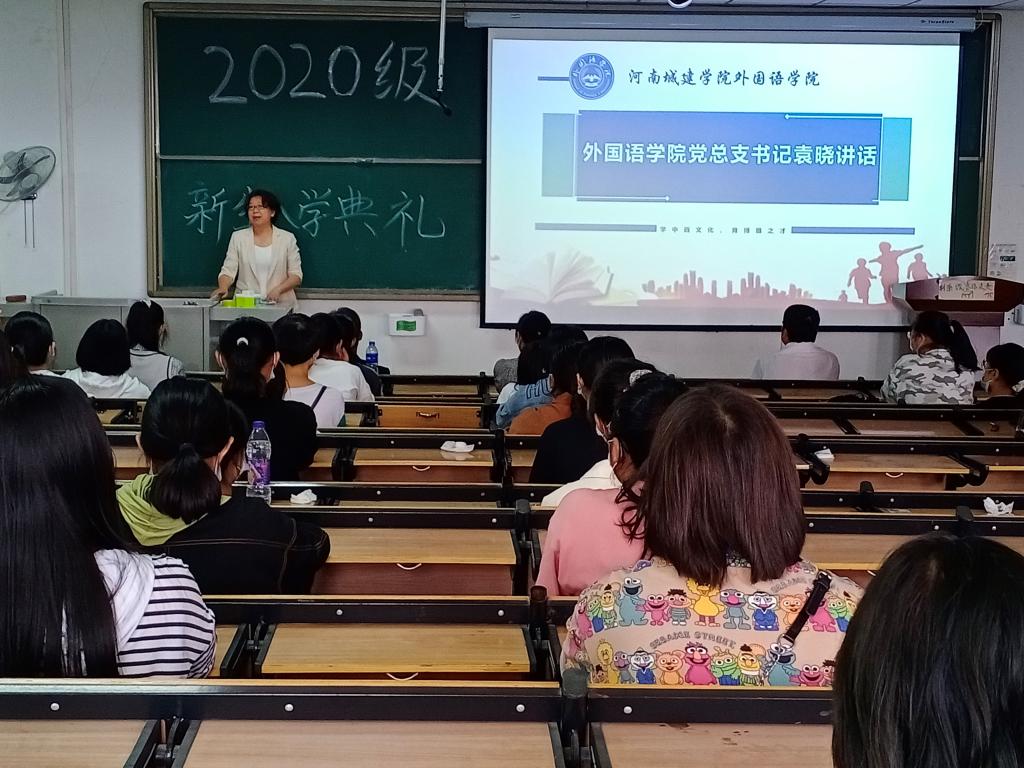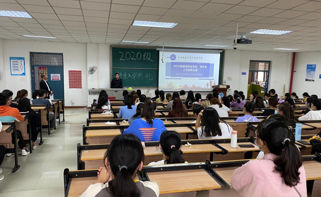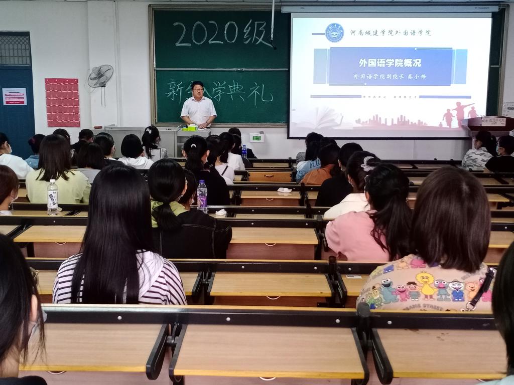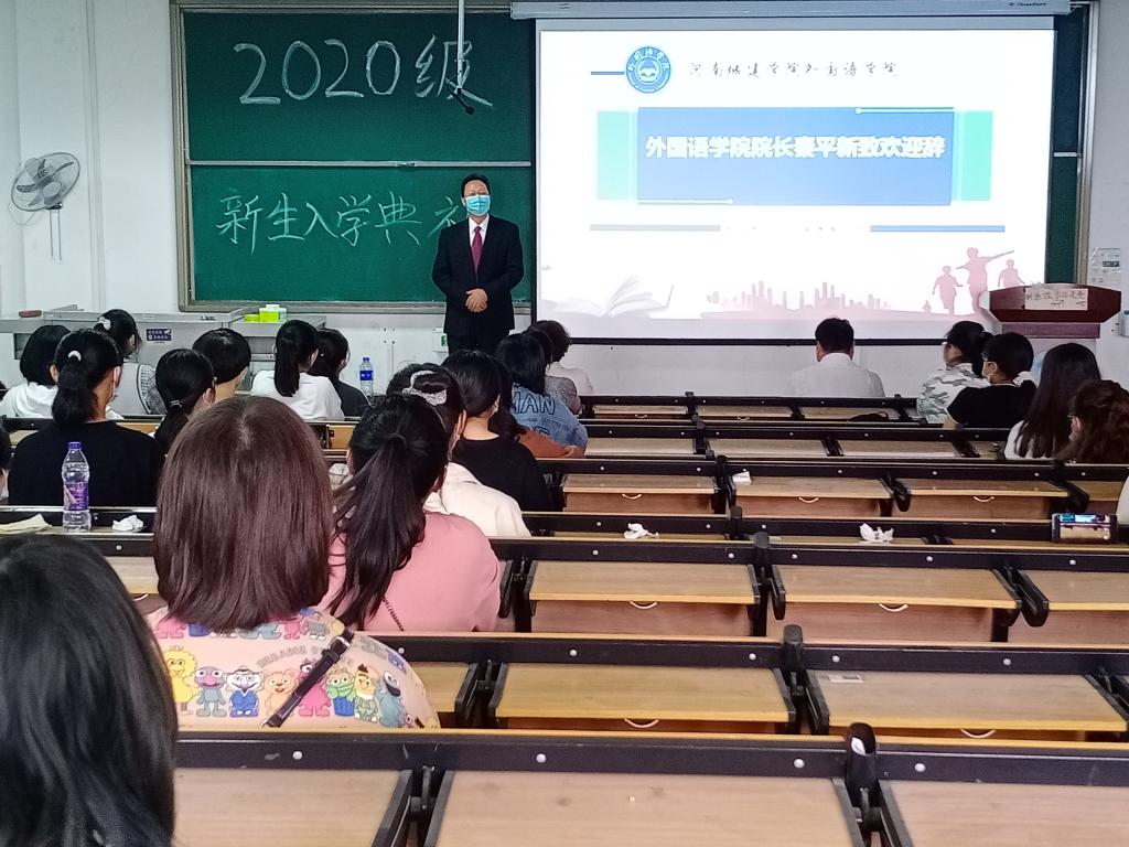 (通讯员 张换成)金秋时节,硕果飘香。9月26日上午,欧美精品一区二区2020级新生入学典礼在和谐校区一号教学楼328多媒体教室举行。学院党总支书记袁晓、院长秦平新、党总支副书记张换成、副院长秦小锋,校企合作办主任王莉、教务办副主任张湘雨、英语专业教研室副教授马建奎、翻译专业教研室副教授张鲁艳、辅导员程燕霞、靳真真及2020级新生班主任、在校生代表出席典礼。为落实疫情防控要求,典礼分两场举行,学生间隔就座。
