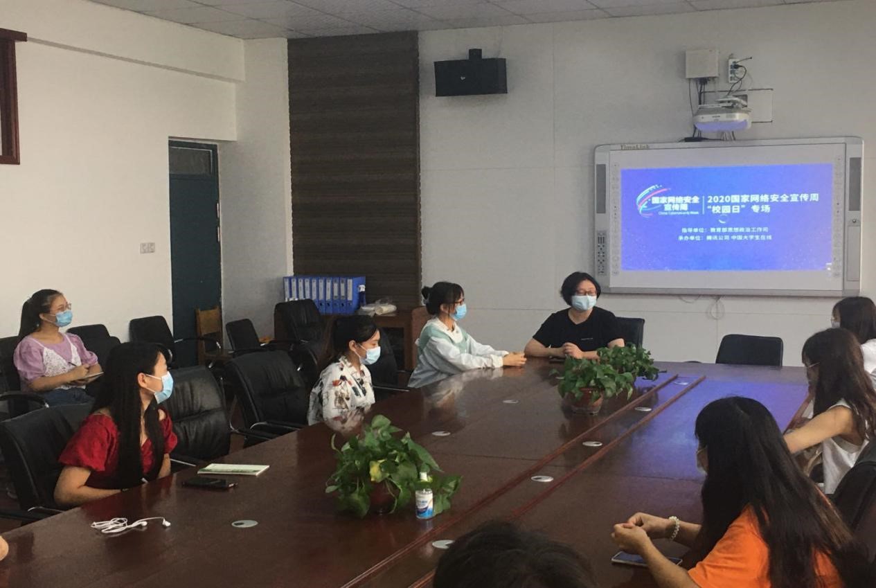 团总支书记田果果向与会人员讲解了《网络安全法》的有关内容以及相关配套法规,要求全体人员在思想上高度重视,在行动上深入学习政策法规和习近平总书记对网络安全工作“四个坚持”的重要指示,组织学生讨论网络安全的意义。