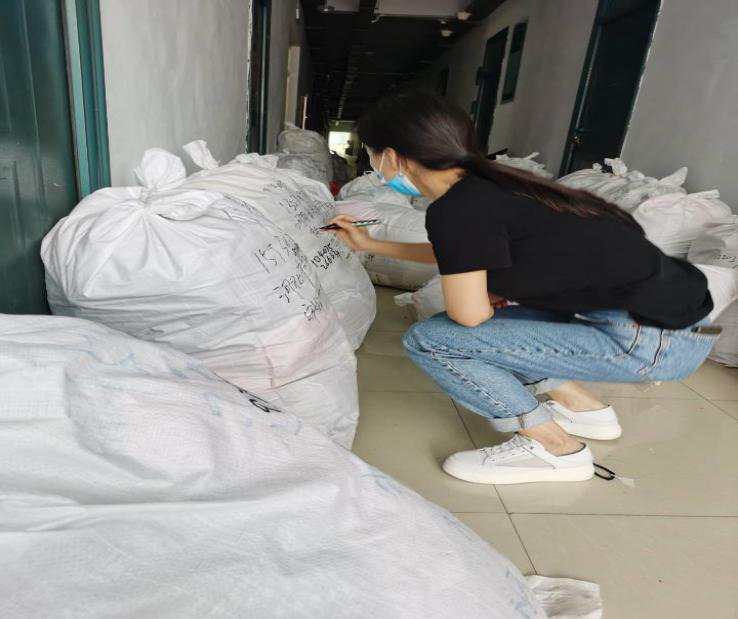 (辅导员程燕霞为学生粘贴快递单号)