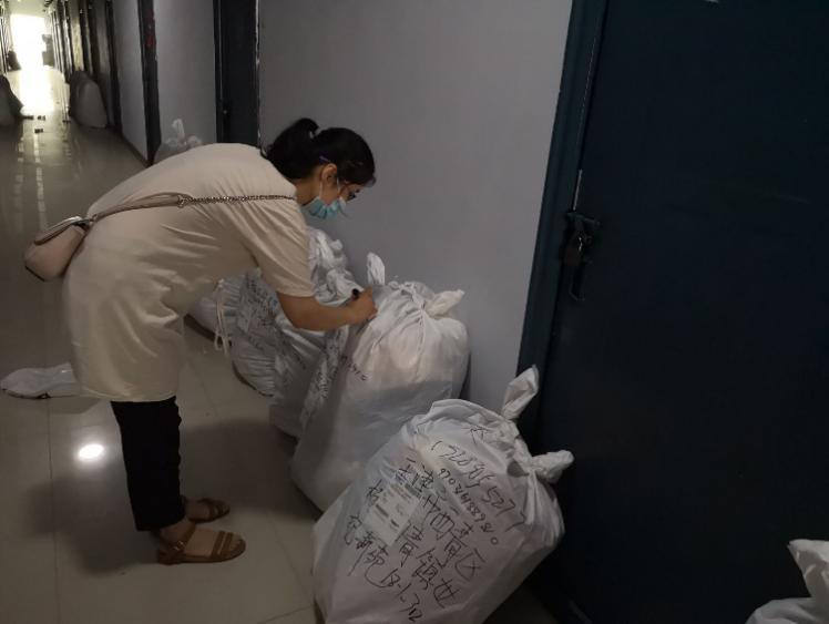 (辅导员景丽亚为学生收拾行李)