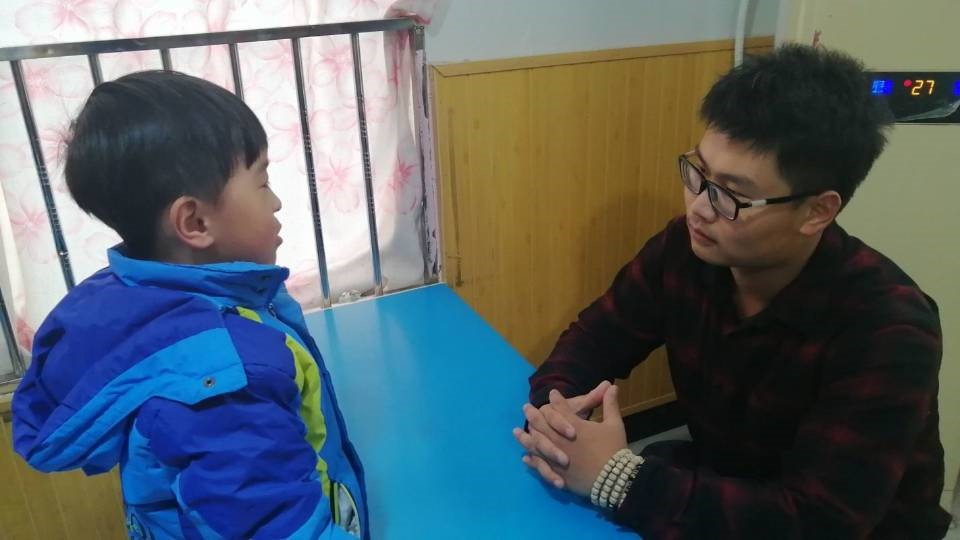 (志愿者与小朋友互动)