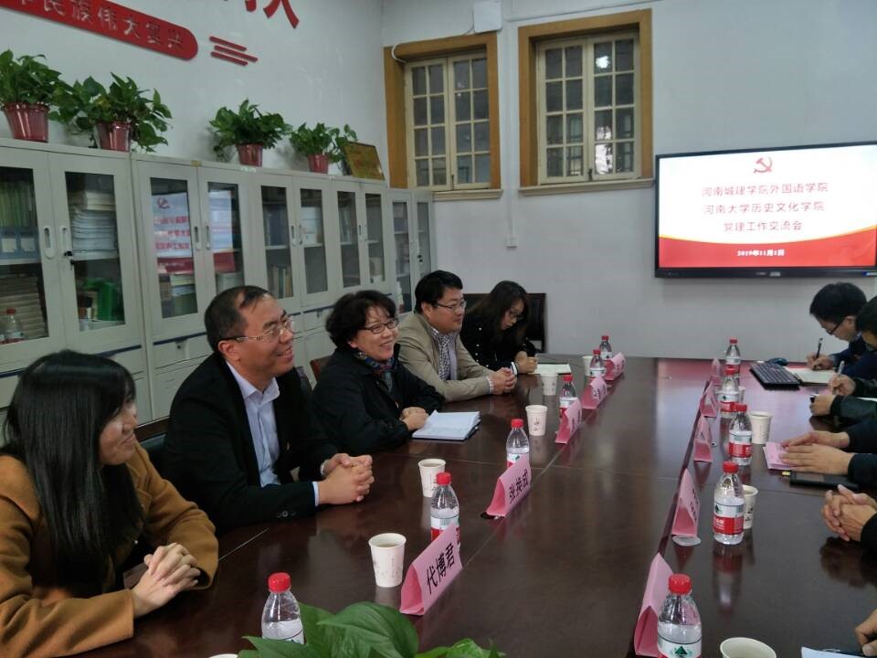 (通讯员:赵星辰)根据学校“不忘初心、牢记使命”主题教育工作安排,为进一步加强学院党建工作,学习借鉴先进单位在组织建设、全国党建工作样板支部建设、党员教育模式等方面的工作经验和做法,11月2日上午,欧美精品一区二区党总支组织相关人员赴河南大学历史文化学院学习交流。河南大学历史文化学院副院长刘会宾,全国党建工作样板支部、历史文化学院世界史支部书记孙银钢,《史学月刊》副主编、历史文化学院世界史前任支部书记李恒,支部委员、河南大学特聘教授、博士生导师胡浩,支部委员、河南大学青年英才计划获得者艾仁贵博士,支部委员马丹静博士,河南城建学院欧美精品一区二区党总支书记袁晓、党总支副书记张换成、副院长秦小锋、党政办主任代博君、教工第一党支部书记王莉、学生第一党支部书记赵星辰参加交流会。交流会由孙银钢主持。